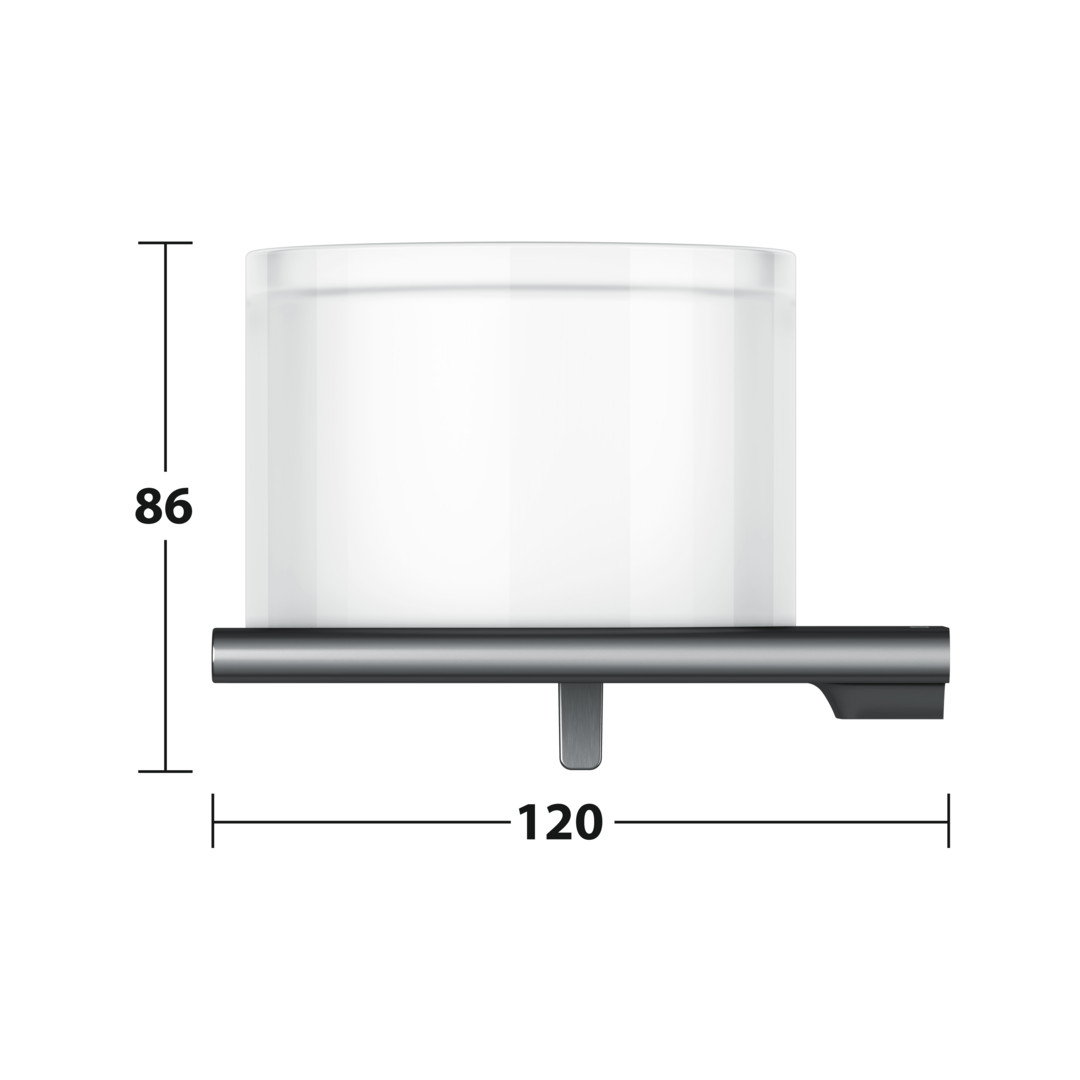 Füllmenge 150 ml, Dosiermenge 0,5 ml/Hub, Betätigung von unten, Befüllung von oben, Echtkristall-Stülpglas mattiert, verdeckte Befestigung, zum Schrauben, mit Befestigungs-Set