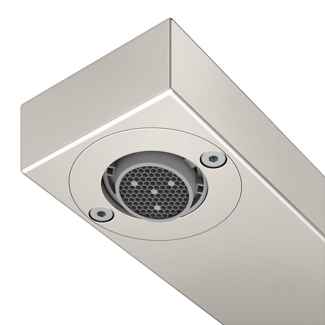 Rosette eckig, Anschlussart Grundkörper G 1/2, Mischwasserkartusche mit keramischen Dichtscheiben, mit Temperaturbegrenzung, Strahlregler M 24 x 1, Strahlwinkel +/-6° verstellbar, Durchflussmenge begrenzt auf 7,6 l/min, für Durchlauferhitzer geeignet, geräuschgeprüft