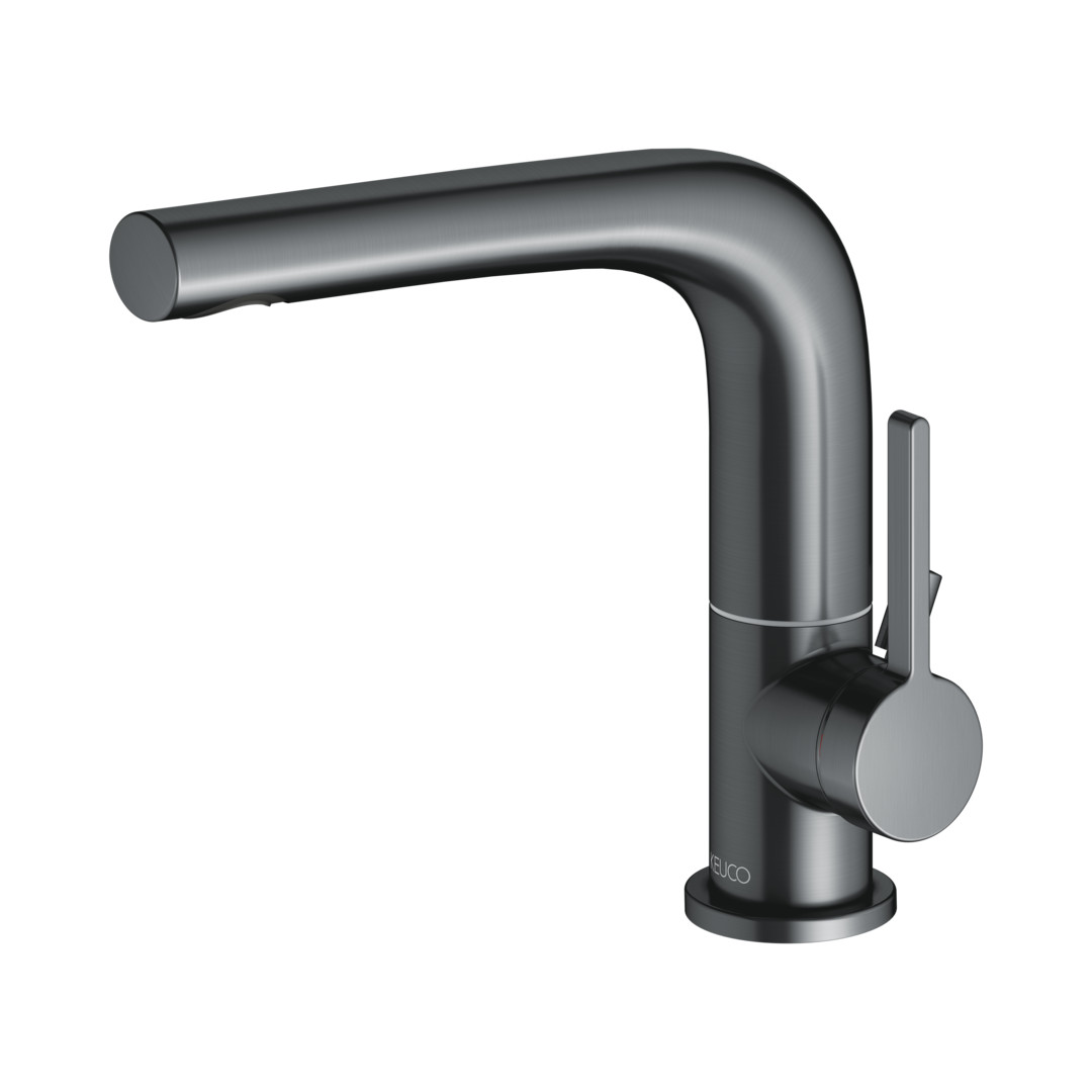 KEUCO Waschtisch-Einhebelmischer 150 Edition 400 Ausladung 153mm, schwenkbar, mit Ablaufgarnitur, Schwarzchrom gebürstet