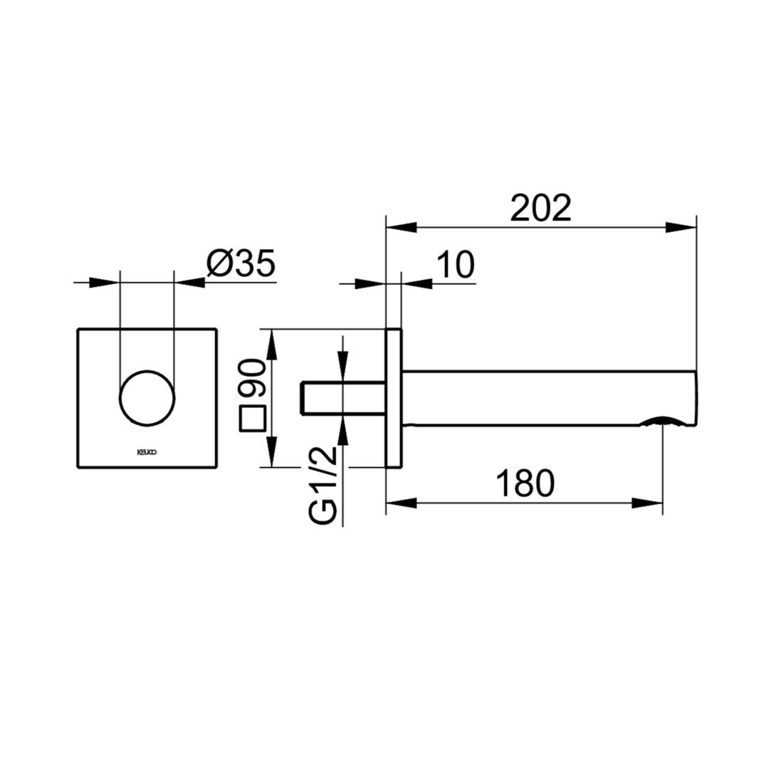 KEUCO Wanneneinlauf IXMO Ausladung 130 mm, verchromt, eckige Rosette KE59545010002