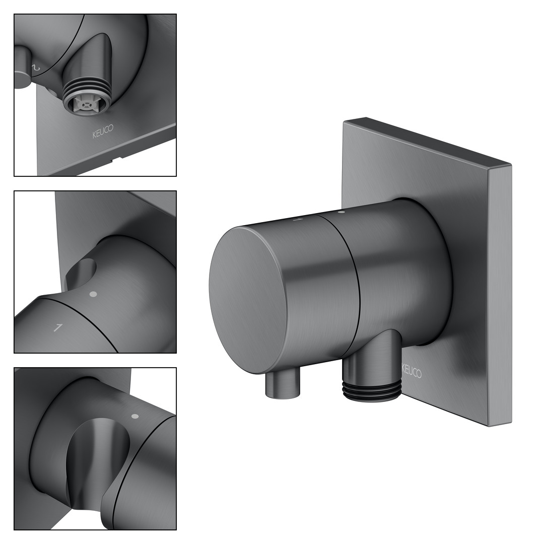 KEUCO Fertigmontageset IXMO Comfort UP-2-Wege-Umstellventil, eckig, Schlauchanschluss/Brausehalter, aluminium-finish KE59556171202