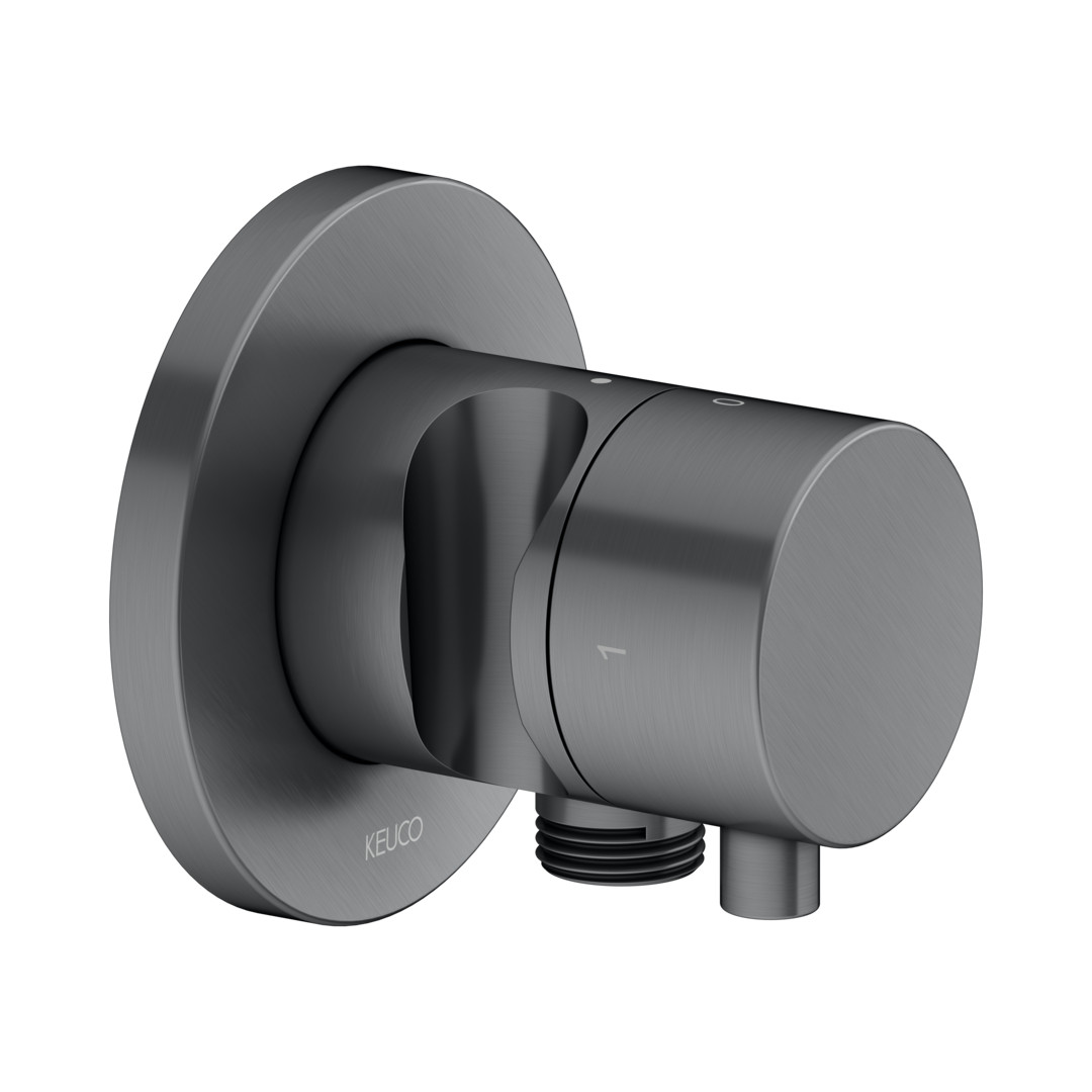 KEUCO Fertigmontageset IXMO UP-Umstellventil, Rosette rund, mit Absperrung, schwarzchrom gebürstet