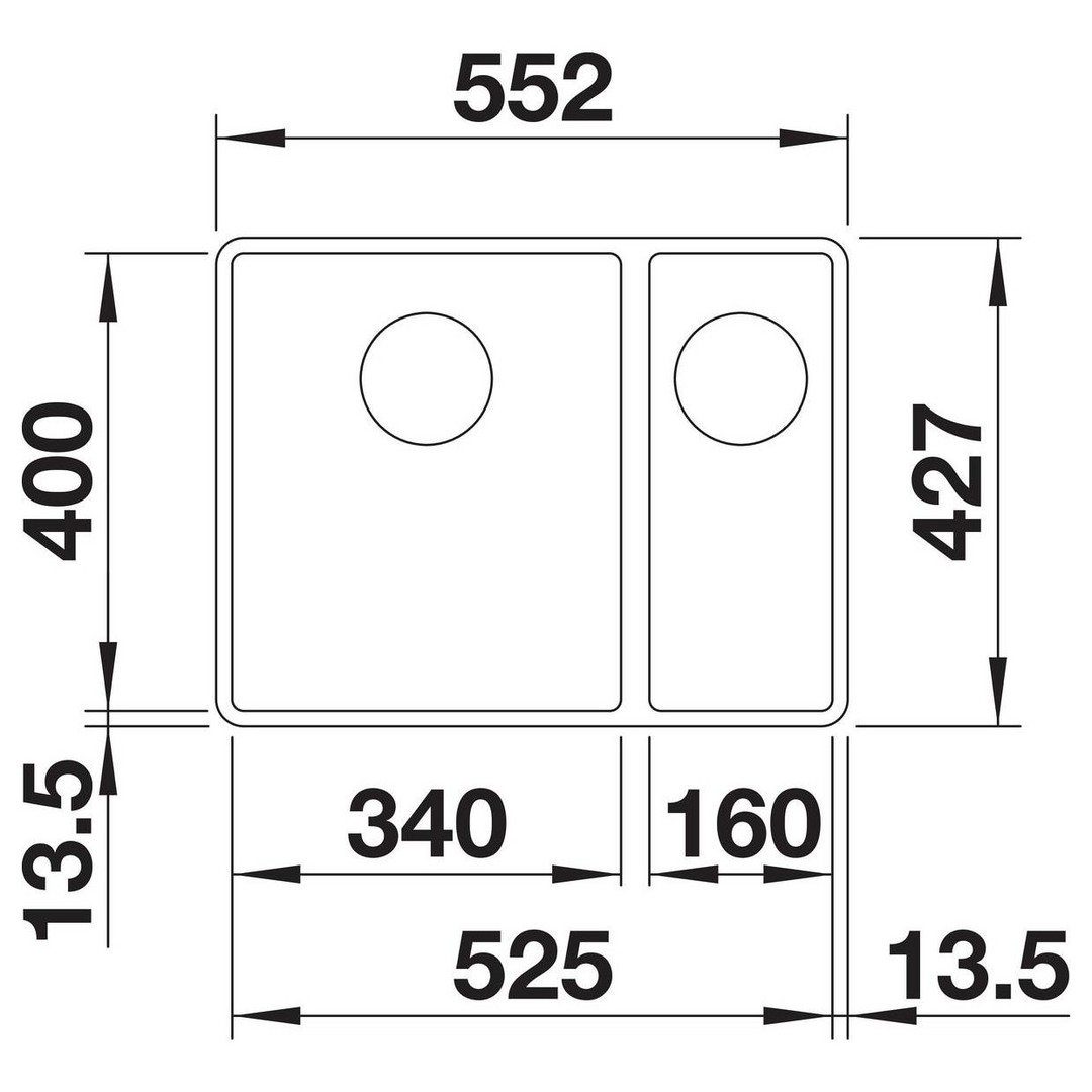 Blanco Becken SUBLINE 340/160-F SILGRANIT 55,2 x 42,7 cm, vulkangrau, Hauptbecken links, ohne Ablauffernbedienung BL527344