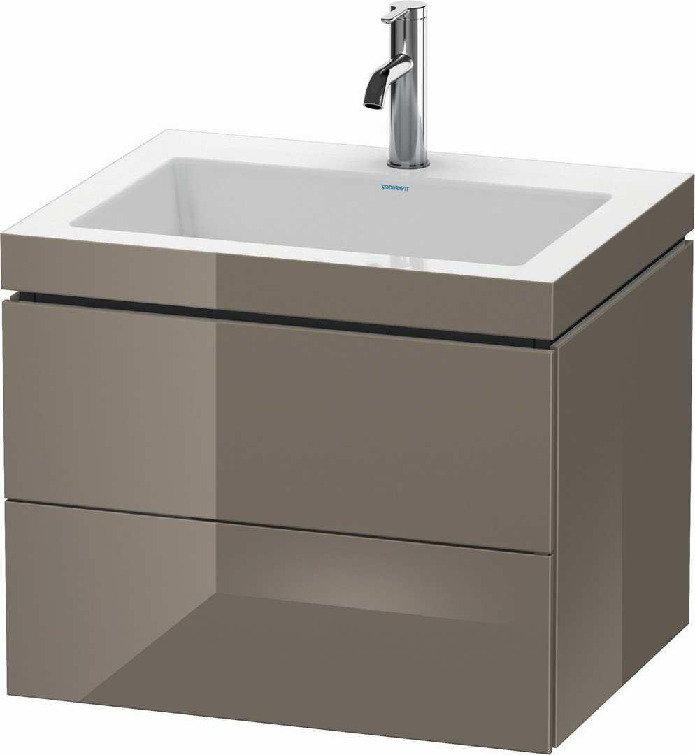 Duravit Waschtisch-Unterschrank c-bonded L-Cube 60 x48 cm, 1 Hahnloch, flannel grey hochglanz, 2 Schubkästen, wandhängend