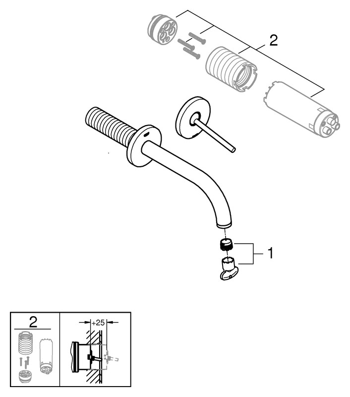 GROHE Fertigmontageset Atrio UP-2-Loch-Wandarmatur, Ausladung 18,5cm, chrom FG19287003