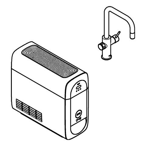 mit Filterfunktion, Einlochmontage Drucktasten für 3 gefilterte und gekühlte Tafelwasserarten still, medium, sprudelnd, Long-Life Oberfläche, SilkMove 28 mm Keramikkartusche, schwenkbarer Rohrauslauf, Schwenkbereich 360°, getrennte Wasserführung für gefiltertes und ungefiltertes Wasser, flexible Anschlussschläuche, Blue Home Kühler liefert 3 Liter gekühltes, sprudelndes Wasser pro Stunde, 180 Watt Kühleinheit, 230V, 50Hz, Lautstärke im Standby Betrieb 44 dB(A), Schutzart IP 21, benötigt Ventilationsöffnungen im Boden des Küchenschranks, Anzeige und Überwachung von Verbrauchsdaten, Filter- bzw. CO2-Kapazität über Watersystems App, Push Benachrichtigung bei niedriger Filter- bzw. CO2-Kapazität, mit Bluetooth 4.0 und WIFI Datenkommunikation für Apple und Android Geräte, Reichweite bis zu 10 m abhängig von Wand- und Bodenbelägen, Blue Filter S-Size, Filterkopf mit flexibler Wasserhärteeinstellung für Regionen mit Wasserhärte über 9° dKH, für Regionen mit Wasserhärte unter 9° dKH bitte Aktivkohlefilter 40 547 001 bestellen, passende Filter: Blue Filter S-Size, M-Size, Blue Aktivkohlefilter, Blue UltraSafe Filter und Blue Magnesium und Zink Filter, Blue 425 g CO2-Flasche enthält Komponente, welche als Gefahrstoff gilt