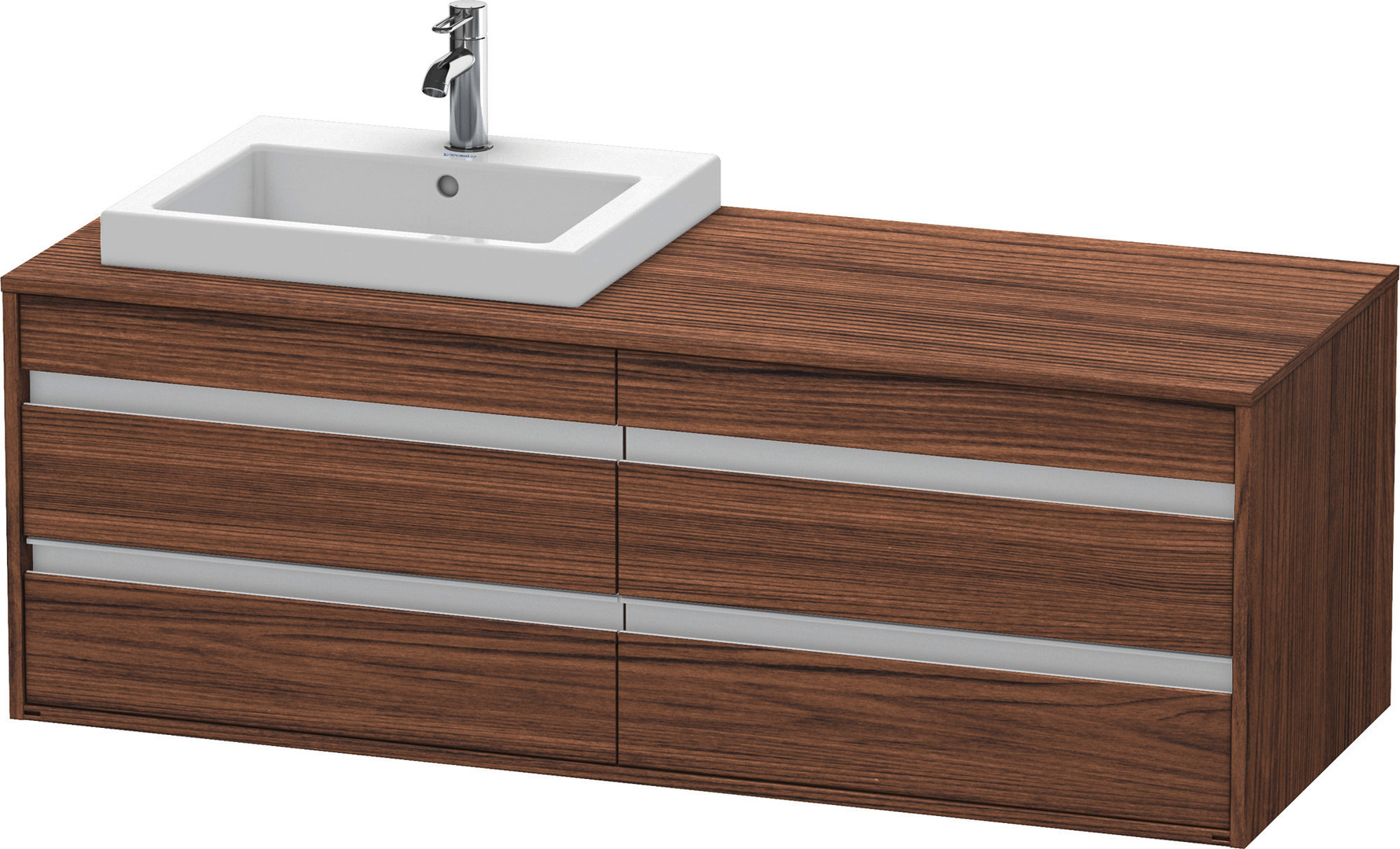 Duravit Waschtisch-Unterschrank Ketho 140x55x49,6cm, für Einbauwaschtisch, 4 Schubkästen, Becken links, nussbaum dunkel