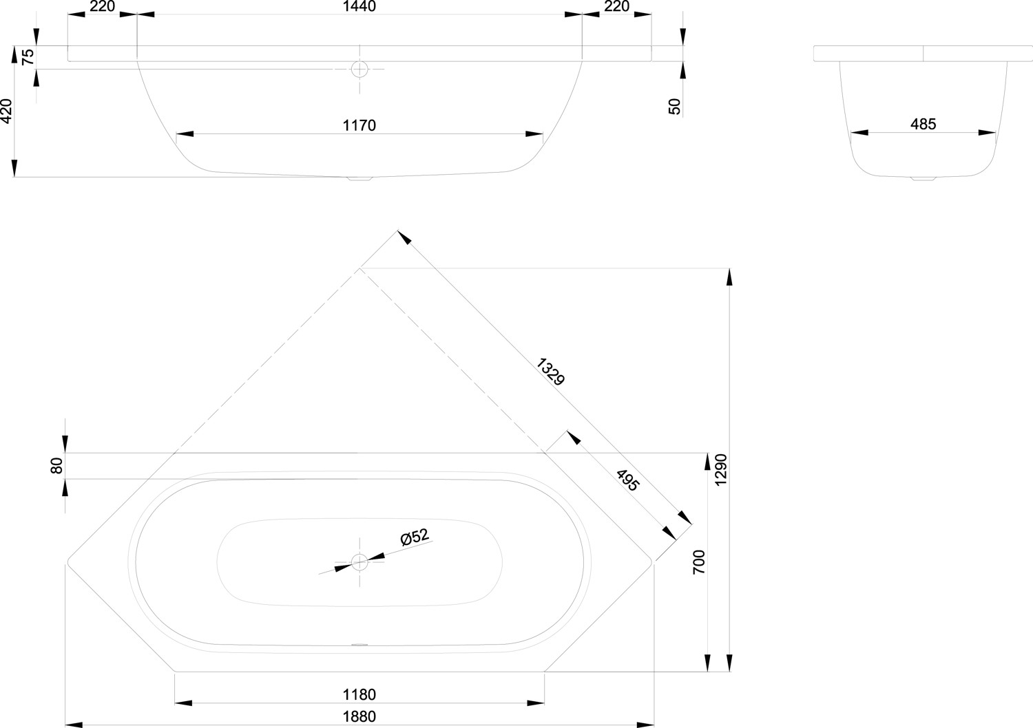 | Durchmesser Ablaufloch | 52 mm |