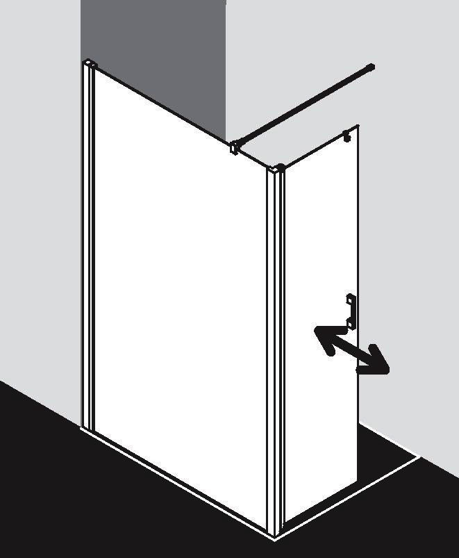 90° Stabilisierung, mit beweglichem Flügel, 90° nach innen und außen schwenkbar, mit Wandbefestigung, mit 90° Stabilisierung, Verglasung mit 5 mm Einscheiben-Sicherheitsglas nach DIN EN 12150, Profile aus eloxiertem Aluminium, Griffe aus Metall, Griffe und Gelenke in edlem Chrom, Verstellmöglichkeit im Wandprofil 25 mm, Profilgelenk mit Hebe-Senk-Mechanismus, waagerechte Dichtleiste mit Wasserabpralleffekt, ohne Bodenschwelle (bodenfrei) installierbar, Befestigungsmaterial