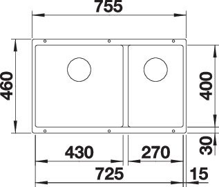 Blanco Becken SUBLINE 430/270-U SILGRANIT 75,5 x 46 cm, anthrazit, Hauptbecken links BL523151