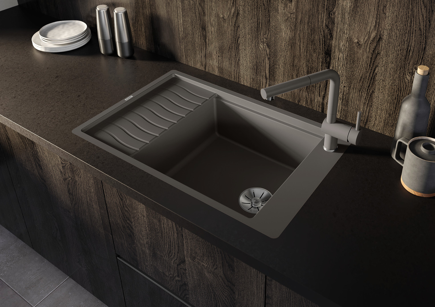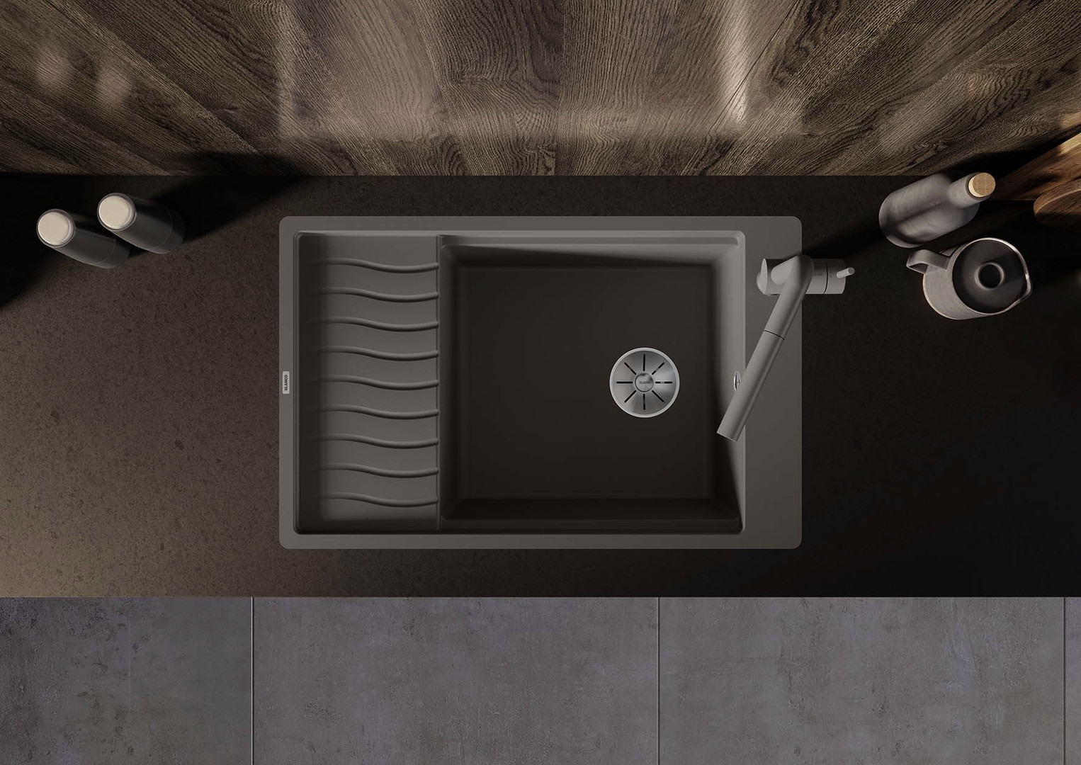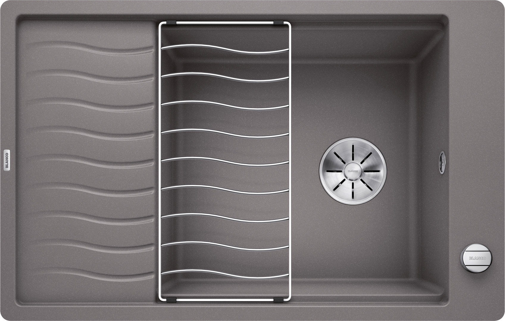 Blanco Spüle ELON XL 6 S-F SILGRANIT 77 x 49 cm, felsgrau, reversibel, mit Ablauffernbedienung/Zubehör BL524855