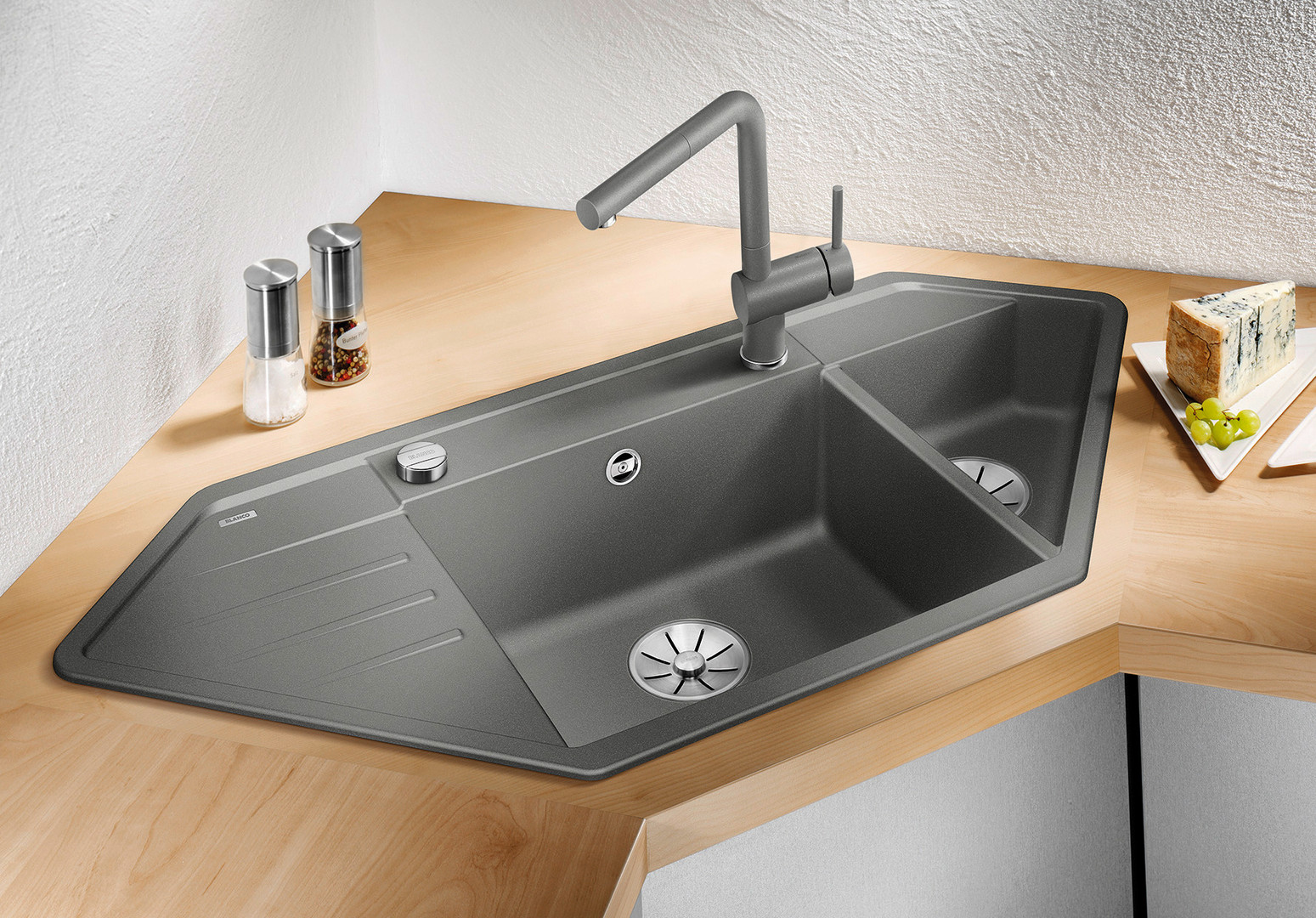 Blanco Spüle LEXA 9 E SILGRANIT 107 x 51 cm, PuraDur felsgrau, Ablauffernbedienung mit Drehbetätigung BL524991