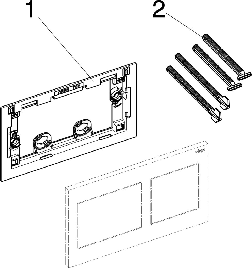 für Prevista, manuelle Spülauslösung von vorn oder oben, 2-Mengen-Spültechnik, mit Befestigungsrahmen, Betätigungsstifteset und Befestigungsbolzen
