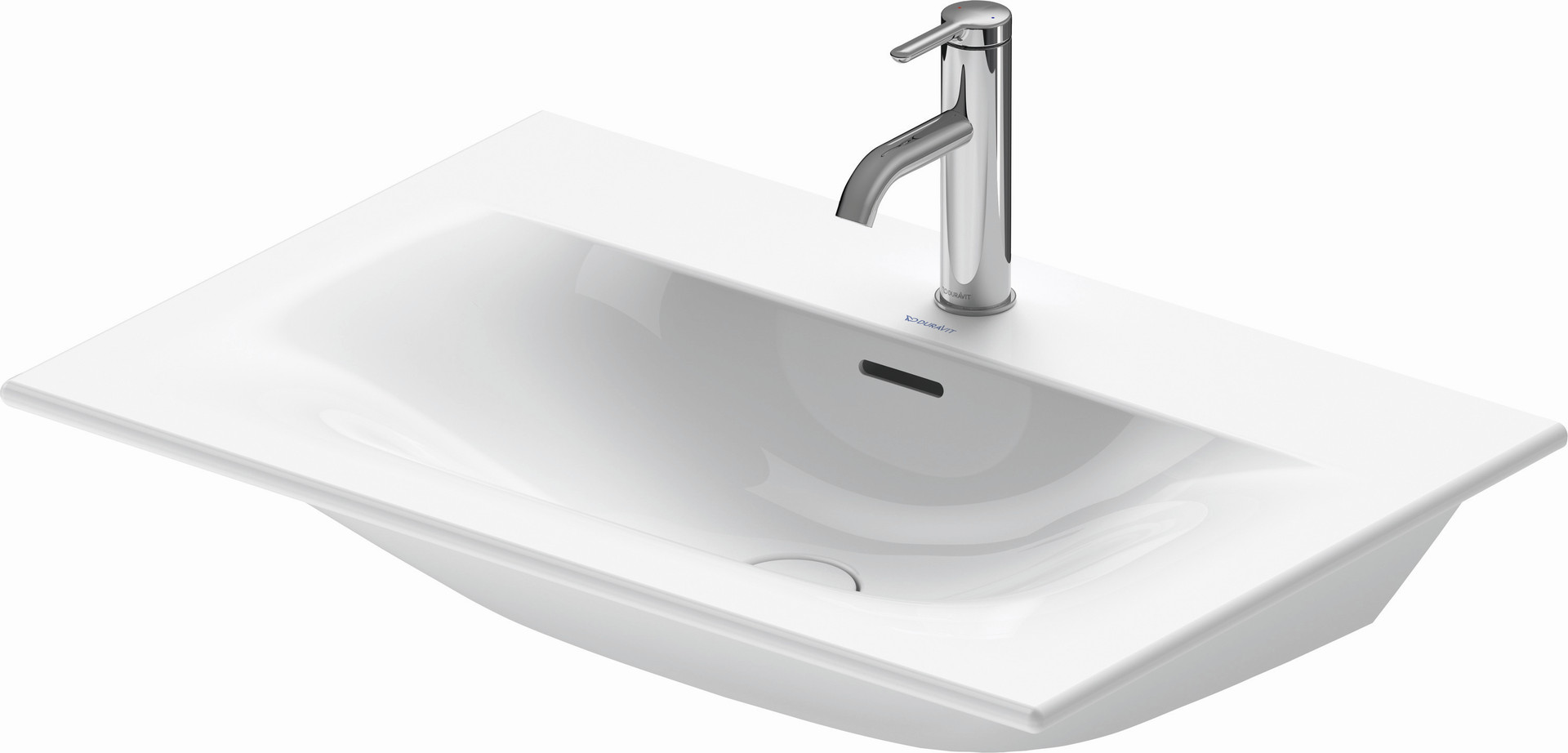 Duravit Möbel-Waschtisch Viu 73 x 49 cm, weiß, ohne Hahnloch, mit Überlauf, Hahnlochbank