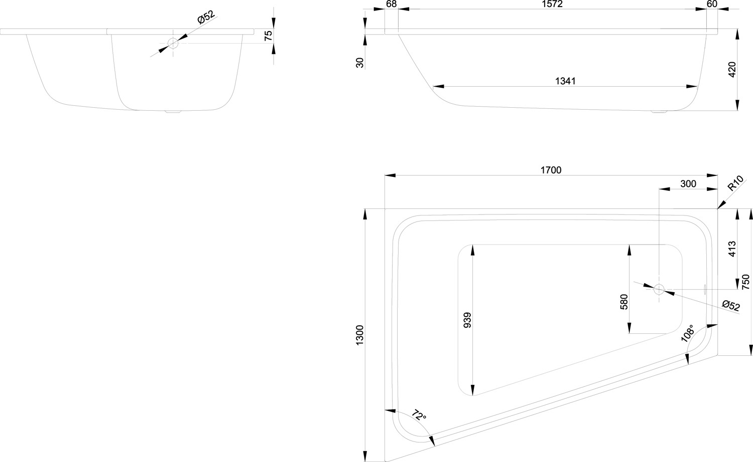 Badewanne BetteSpace L-1132 170x130x42cm, Ecke links, weiß BE1132000