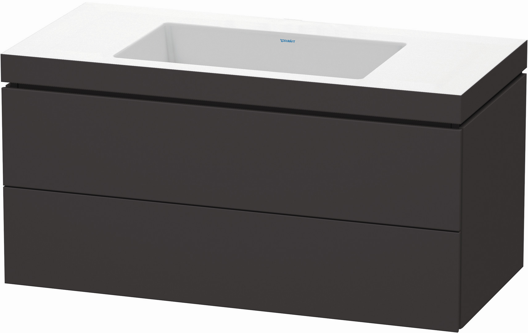 Duravit Waschtisch-Unterschrank c-bonded L-Cube 100 x 48 cm, ohne Hahnloch, graphit supermatt, 2 Schubkästen, wandhängend