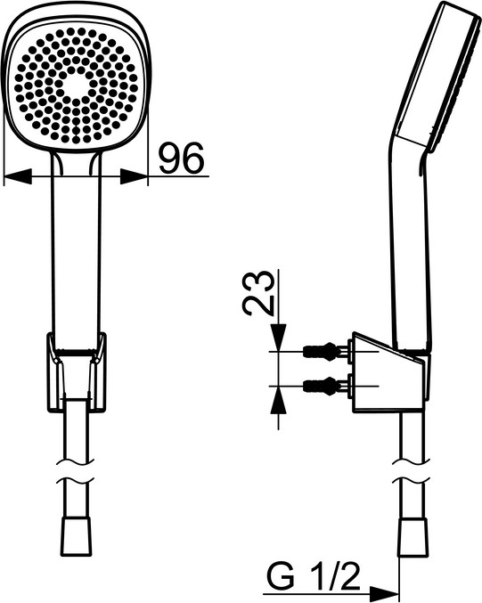 Heißwasserversorgung max. 65°C, Arbeitsdruck 0,5-5 bar, Anschlussgröße G1/2, Handbrausengröße Ø 96 mm, Material Verbundwerkstoff, Handbrause, Brauseschlauch (1500 mm), Brausehalter, Anti-Kalk-Technik
