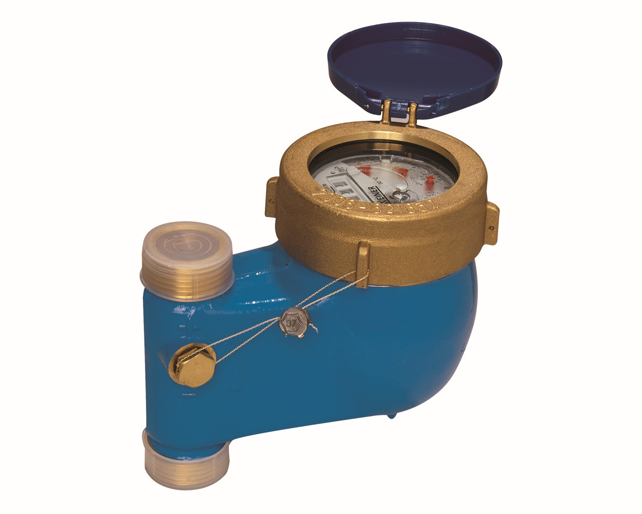 für vertikalen Einbau, Mehrstrahl-Nassläufer, Gehäuse Messing blau beschichtet, zulässiger Betriebsdruck PB 16 bar, zulässige Betriebstemperatur Kaltwasser 30 °C, Medium Trinkwasser, Zulassung nach MID (R80H/R50V-Q3-2,5-10 cbm/h)
