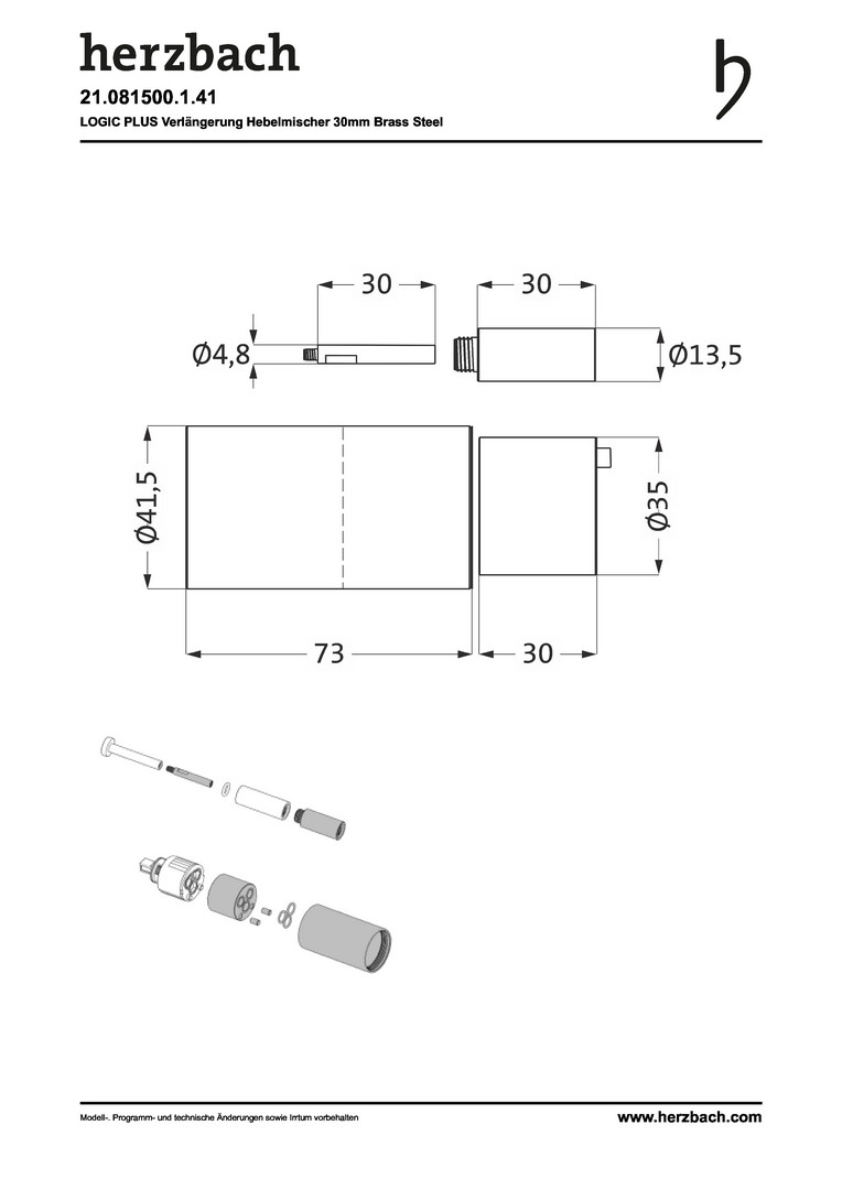 Herzbach UP-Verlängerung Logic Plus 30mm, nicht kürzbar, für Einhandmischer, brass steel HF21081500141