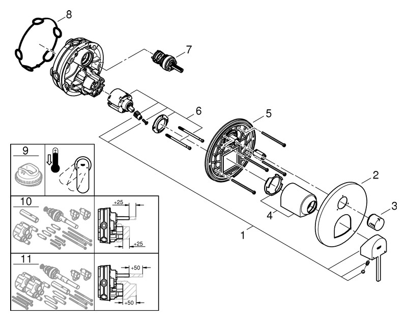 GROHE Fertigmontageset PLUS UP-Einhebelmischer, 3-Wege-Umstellung, chrom FG24093003