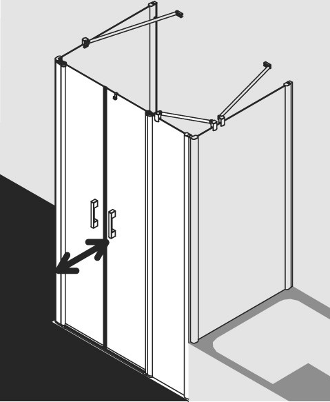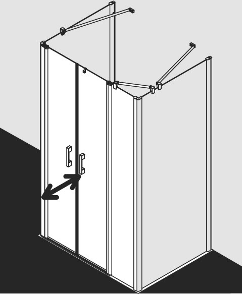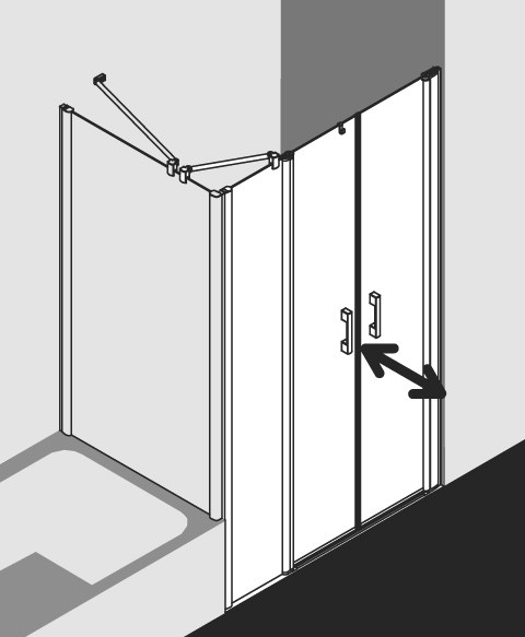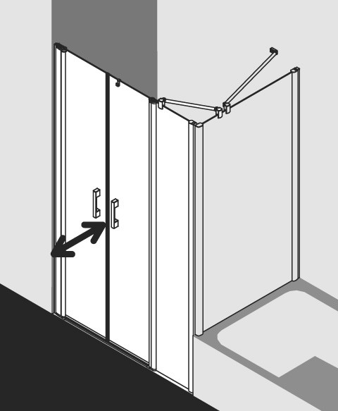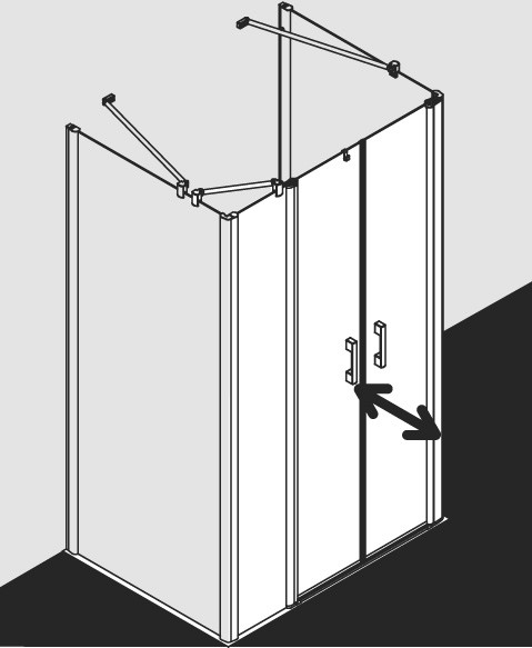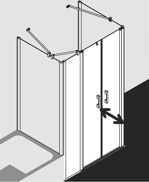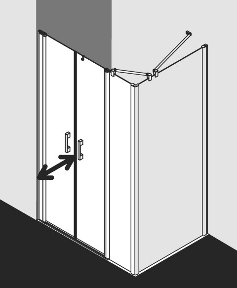 Kermi X-Like Pendeltür mit Festfeld auf Duschwanne 150 x 200 cm, ESG klar, silber hochglanz, rechts