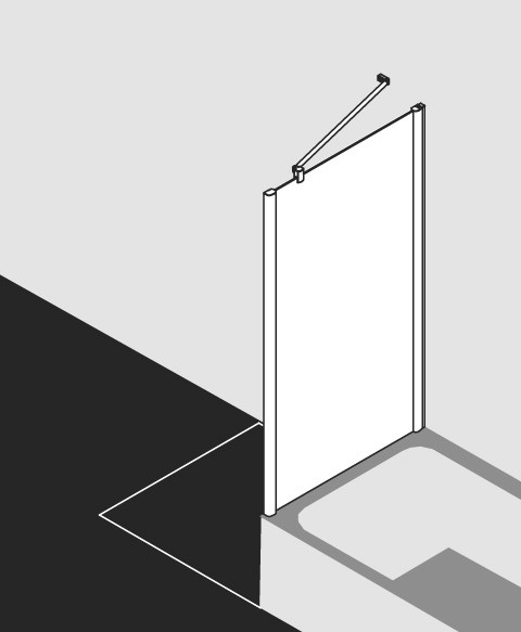 Kermi X-Like Seitenwand verkürzt auf Badewanne 80 x 160 cm, ESG klar, silber hochglanz EX06200370005
