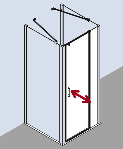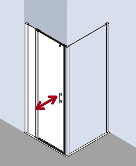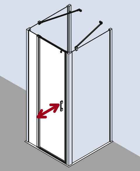 zum Einbau in einer Nische und zur Konbination mit LI TWD Seitenwand/LI TVD Seitenwand verkürzt auf Badewanne, teilgerahmt, mit einem Glasflügel-nach innen und außen öffnend, mit einem Festfeld, mit Zugstab und Stabisierung (innen), ohne Zugstab installierbar, Nische/Ecke ohne Zugstab mit LI TWD und zusätzlicher Liga-Stabilisierung (innen) ZDSS VSS LI, Glasstärke 5 mm, Profile aus Aluminium, Griffe und Gelenke aus Metall, bei Oberfläche silber mattglanz Griffe, Gelenke und Anschlüsse für Zugstab und Bodenschwelle in Chrom, Verstellmöglichkeit je Wandprofil 25 mm, Gelenk mit Hebe-Senk-Mechanismus, durchgehende Magnetleisten und Dichtprofile, waagerechte Dichtleiste in Dachrinnenform, mit 6 mm Bodenschwelle oder ohne Bodenschwelle (bodenfrei) installierbar, mit Befestigungsmaterial und transparentem Handtuchhalter-Haken, geprüft nach DIN EN 14428 (CE) und PPP 53005 (TÜV/GS), die waagerechte Schräge darf max. 5 mm betragen