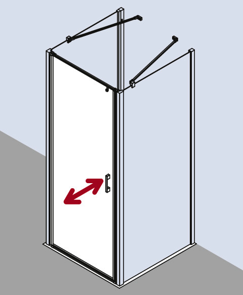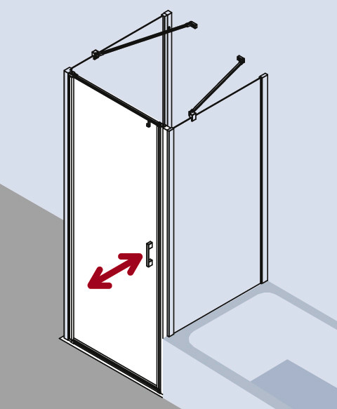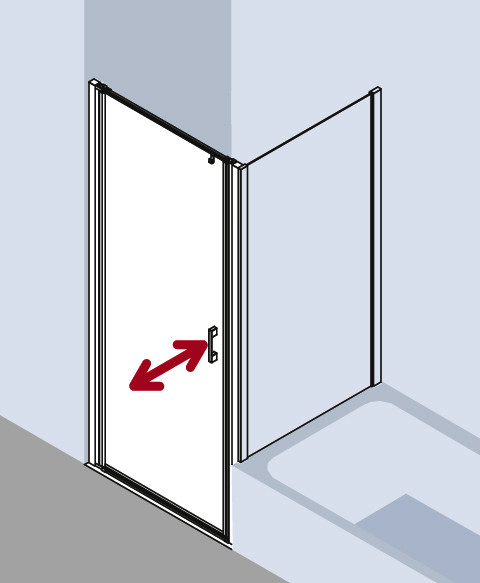 zum Einbau in einer Nische und zur Konbination mit LI TWD Seitenwand/LI TVD Seitenwand verkürzt auf Badewanne, teilgerahmt, mit einem Glasflügeln-nach innen und außen öffnend, mit Zugstab, ohne Zugstab installierbar, Ecke ohne Zugstab mit LI TWD und zusätzlicher Liga-Stabilisierung (innen) ZDSS VSS LI, Glasstärke 5 mm, Profile aus Aluminium, Griffe und Gelenke aus Metall, bei Oberfläche silber mattglanz Griffe, Gelenke und Anschlüsse für Zugstab und Bodenschwelle in edlem chrom, Verstellmöglichkeit je Wandprofil 25 mm, Profilgelenk mit Hebe-Senk-Mechanismus, durchgehende Magnetleisten und Dichtprofile, waagerechte Dichtleiste in Dachrinnenform, mit 6 mm Bodenschwelle oder ohne Bodenschwelle (bodenfrei) installierbar, mit Befestigungsmaterial und transparentem Handtuchhalter-Haken, geprüft nach DIN EN 14428 (CE) und PPP 53005 (TÜV/GS), die waagerechte Schräge darf max. 5 mm betragen
