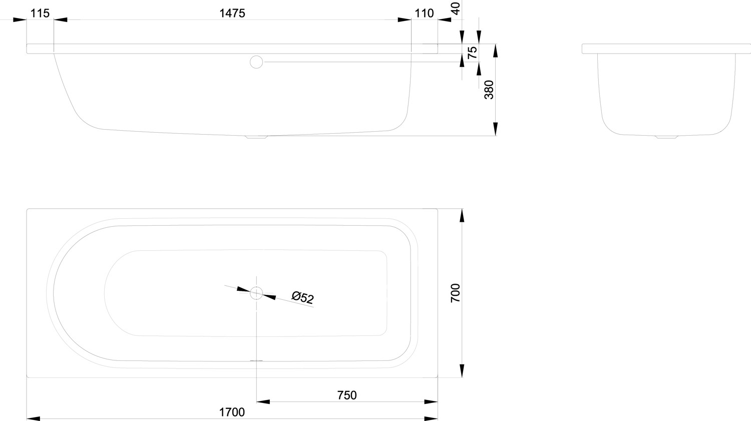 | Tiefe (innen bis zum Überlauf) | 380 mm |
