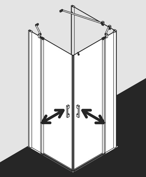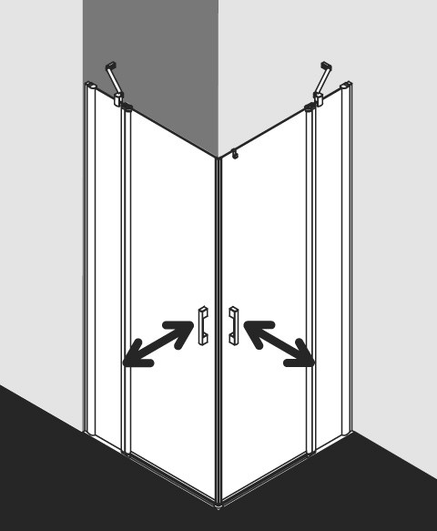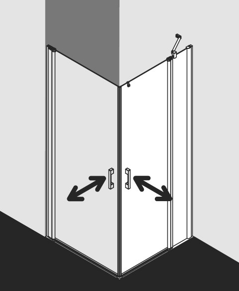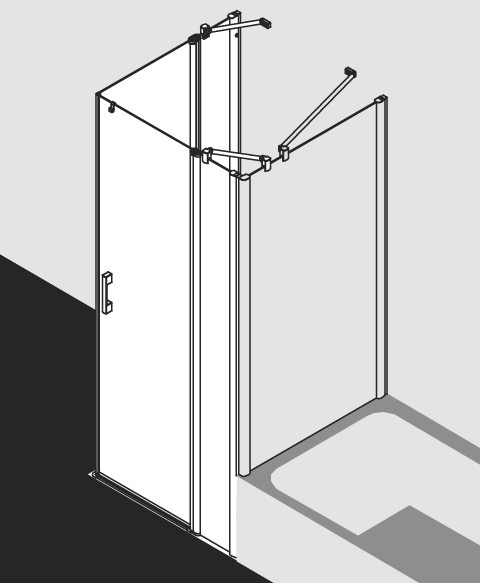 Kermi X-Like Pendeltür-Eckeinstiegshälfte 2-tlg. auf Duschwanne 93 x 200 cm, ESG klar, silber hochglanz, rechts