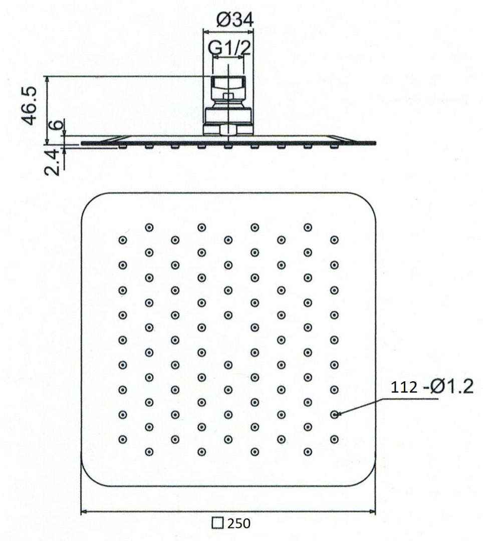 FORMAT Kopfbrause 250 x 250 x 2 mm, Edelstahl poliert, quadratisch