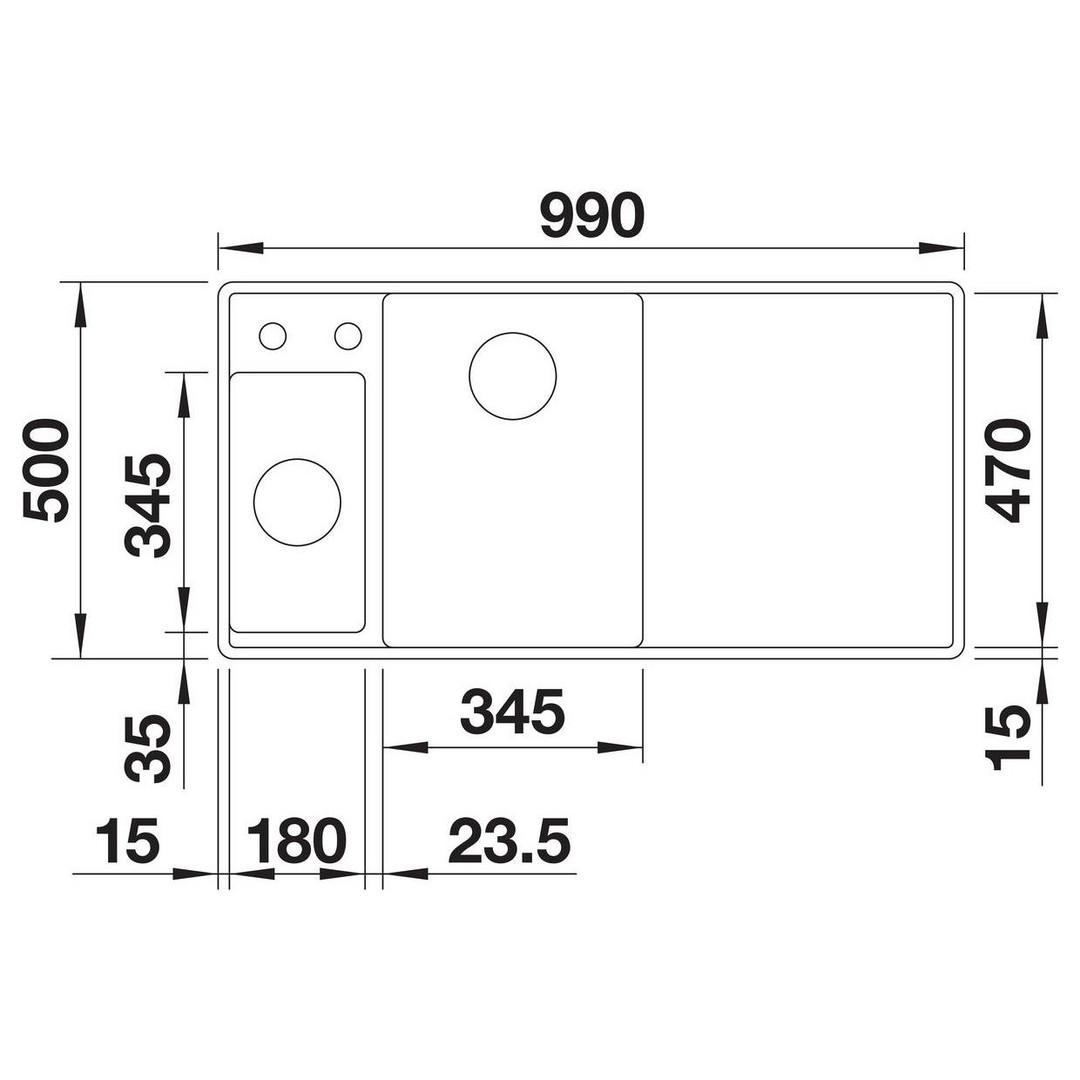 Blanco Spüle AXIA III S-F SILGRANIT 99 x 50 cm, schwarz, Hauptbecken links, mit Ablauffernbedienung/Holzschneidbrett