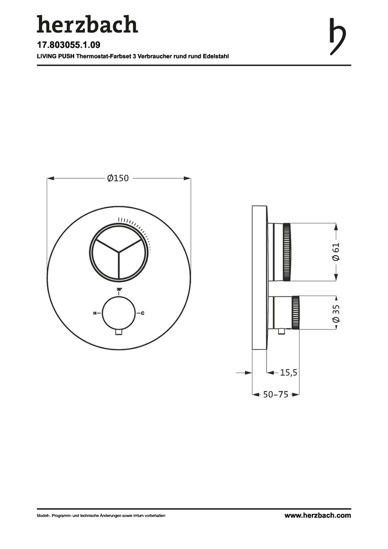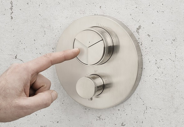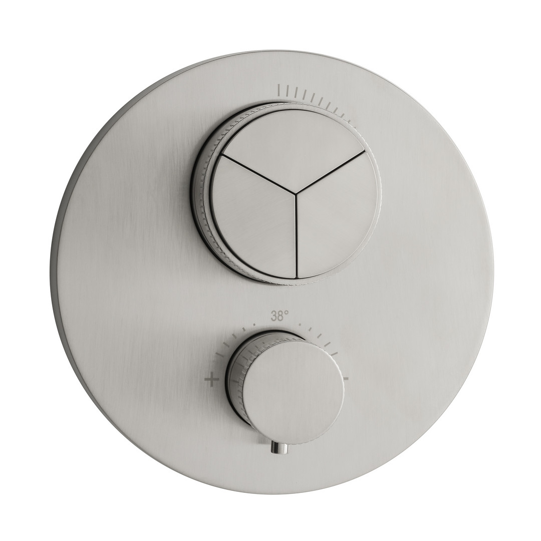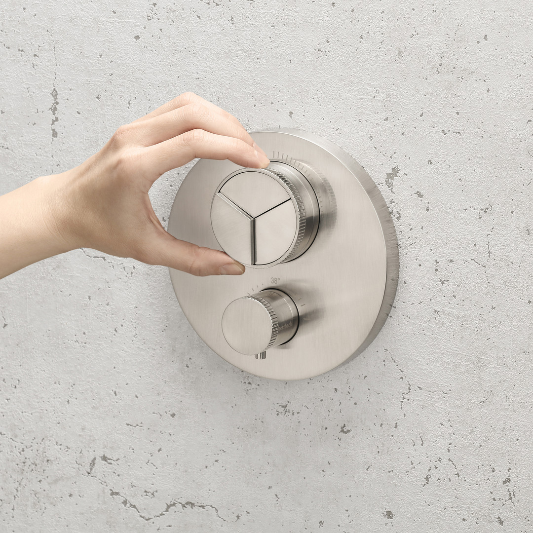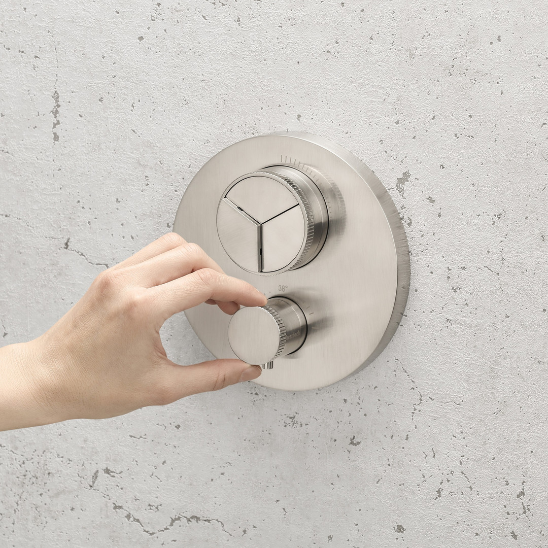 Herzbach Fertigmontageset Living PUSH round UP-Thermostat, 3 Verbraucher, Edelstahl gebürstet HF17803055109