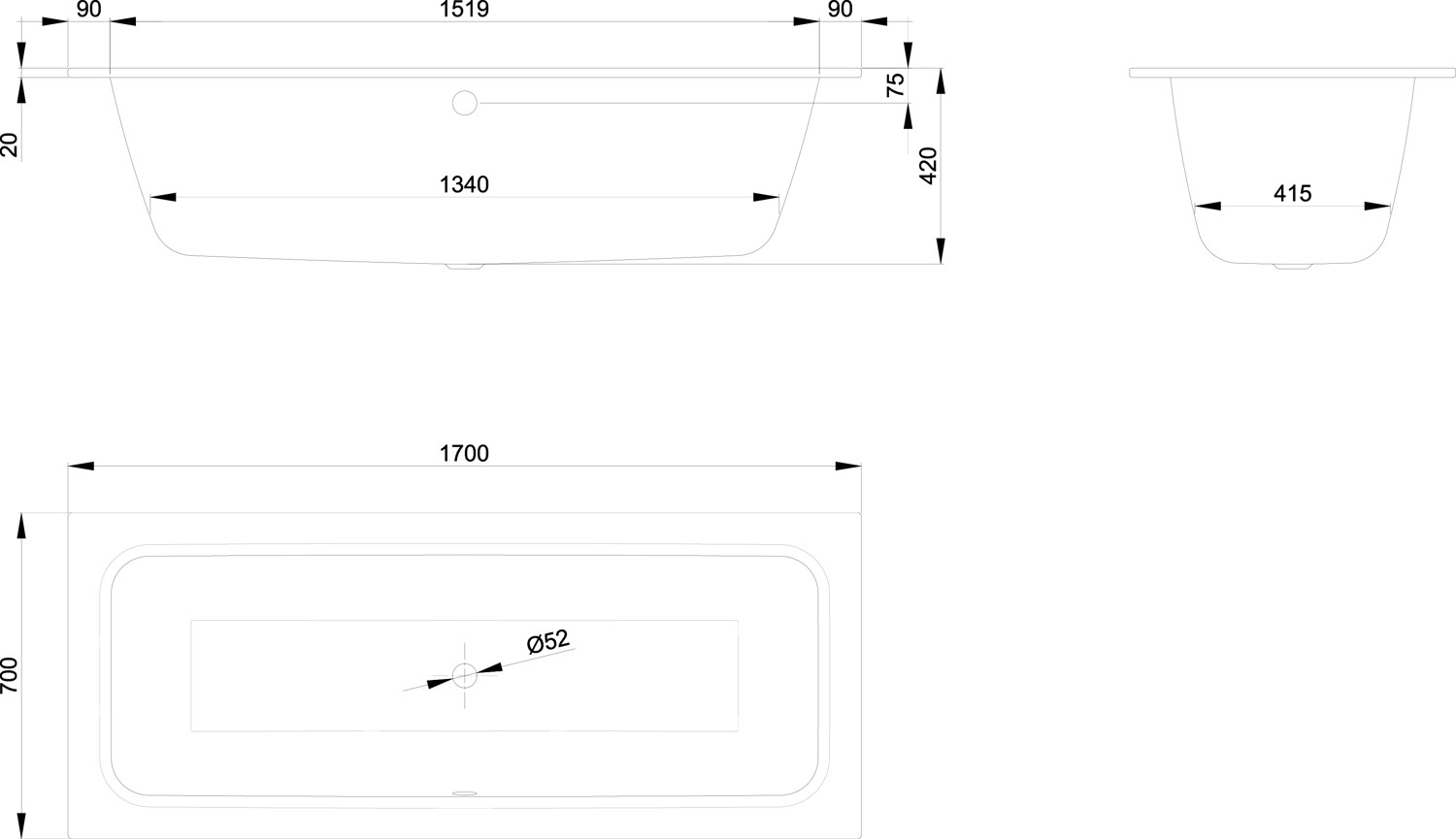 | Tiefe (innen bis zum Überlauf) | 420 mm |