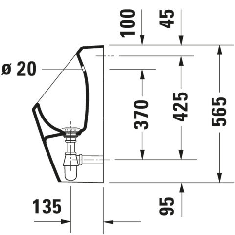 Anschlussmaß Wasseranschluss 1/2", Abgang waagerecht, mit verdeckten Abgang und Zulauf, Spülform Verdrängung, min. Spülwassermenge 1 l, mit Spüldüse, Geruchsverschluss, Zulauf-Set, Ablaufventil, Ø 32 mm Tassensiphon, Befestigungsmaterial, nur in Verbindung mit regulierbaren UP-Druckspülern