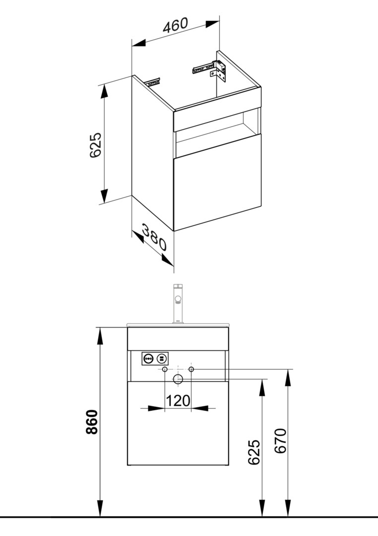 Öffnung durch oberen Eingriff, mit Anschlagdämpfung, Wandmontage, Ausstattung offenes Ablagefach über die ganze Breite, Geruchsverschluss G 1 1/4 x 32, Einlegematte, Beleuchtung ein-/ausschalten über integrierten Touch-Sensor oder Raumschalter, 3000 Kelvin (warmweiß), Fachbeleuchtung, LED, Netzanschluss erforderlich, Elektrik 1 Steckdose, 1 USB und 1 USB-C Ladestelle, für Einbauwaschtische