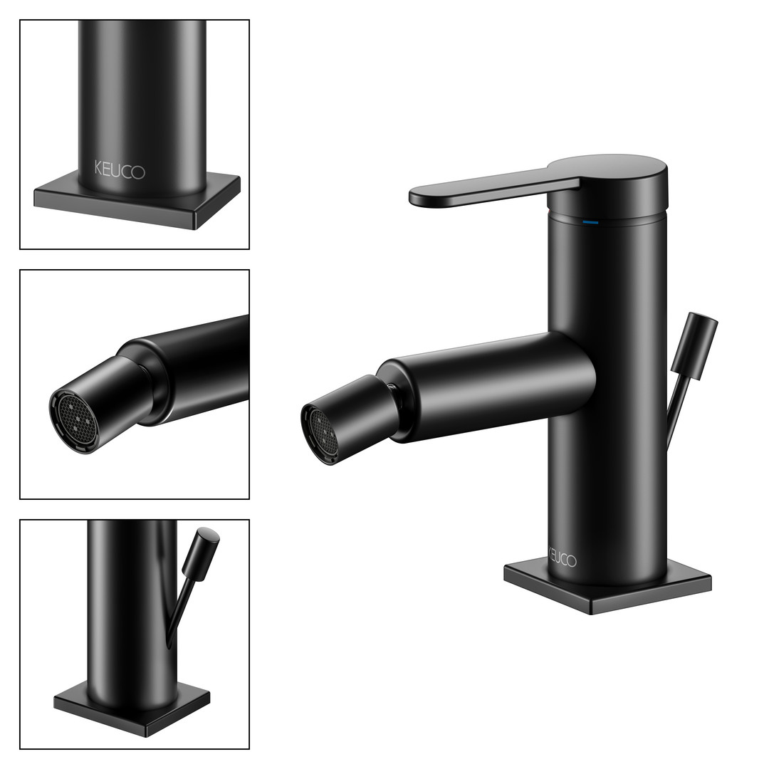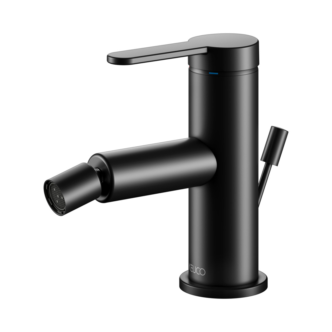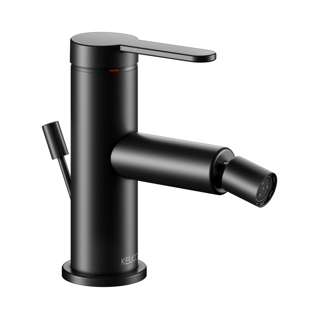 KEUCO Bidet-Einhebelmischer IXMO Flat Ausladung 110mm, mit Ablaufgarnitur, schwarz matt