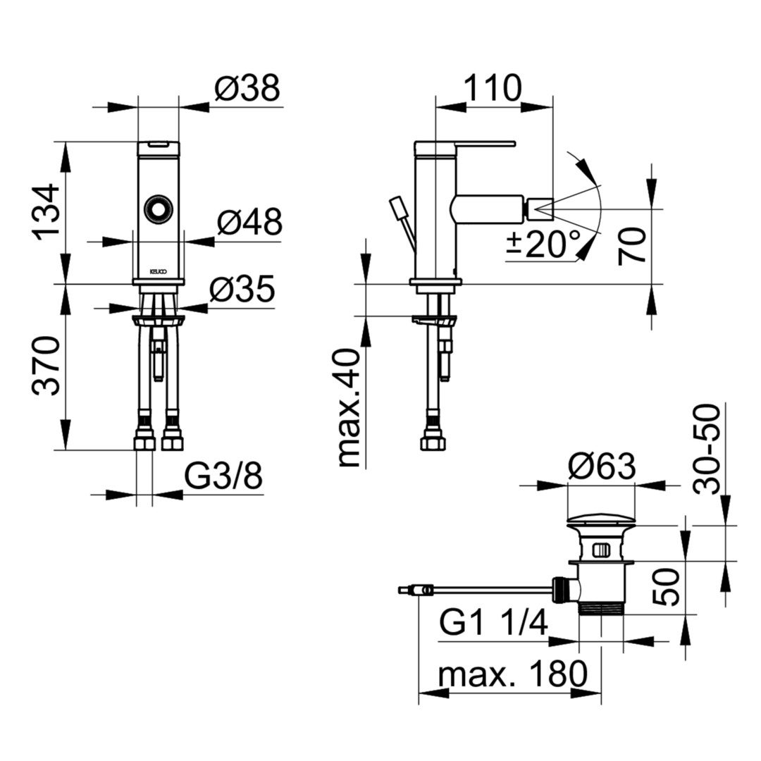 KEUCO Bidet-Einhebelmischer IXMO Flat Ausladung 110mm, mit Ablaufgarnitur, verchromt KE59509013000