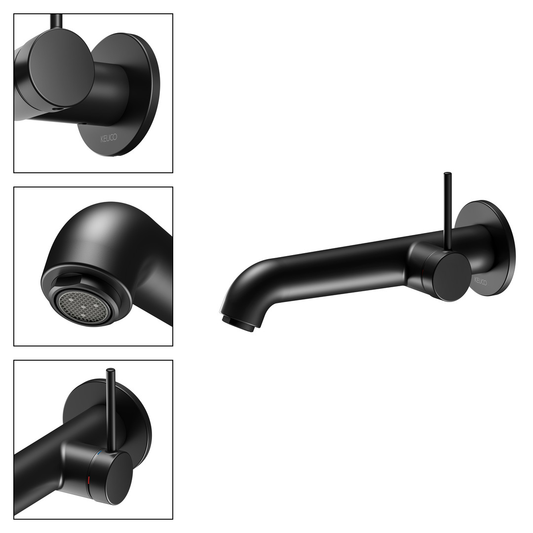 KEUCO Fertigmontageset IXMO Soft UP-Waschtisch-Einhebelmischer, ohne Ablaufgarnitur, Rosette rund, Ausladung 225 mm, schwarz matt