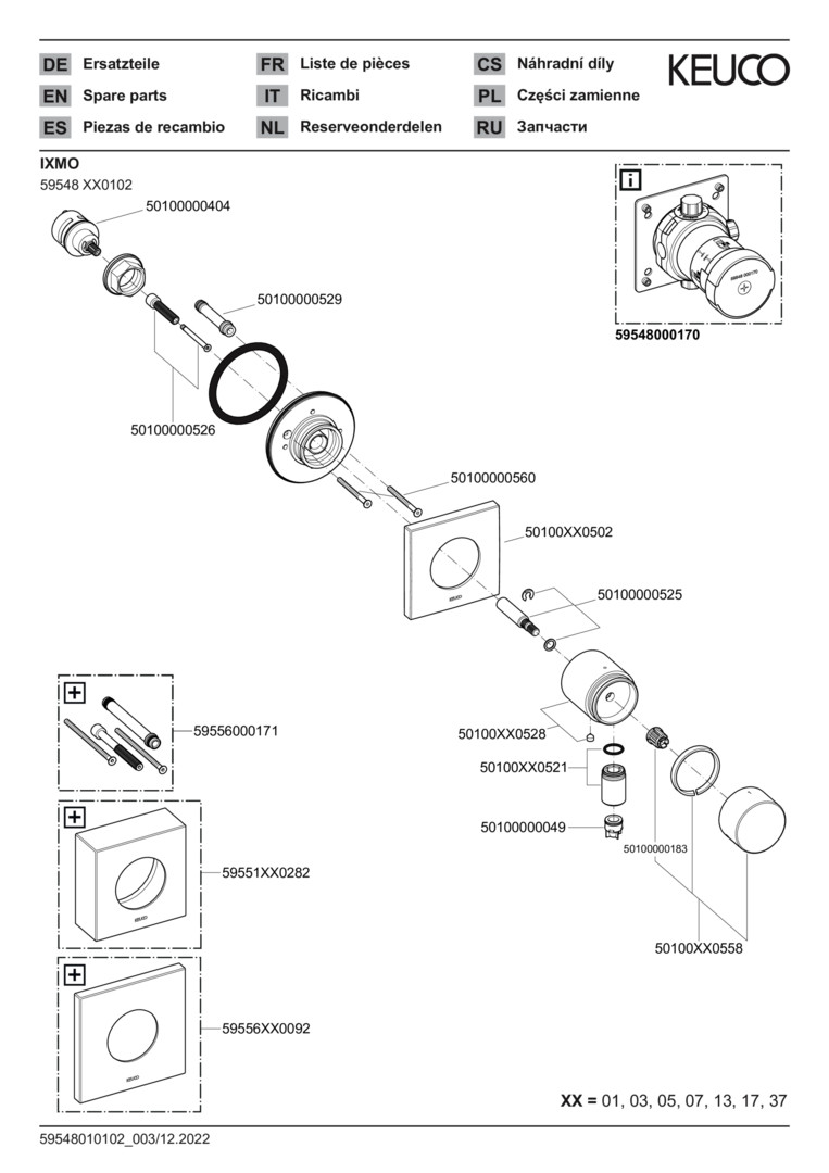 KEUCO Fertigmontageset IXMO Pure UP-3-Wege-Umstellventil, eckig, Schlauchanschluss, verchromt KE59548010102
