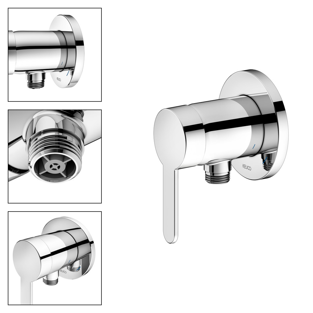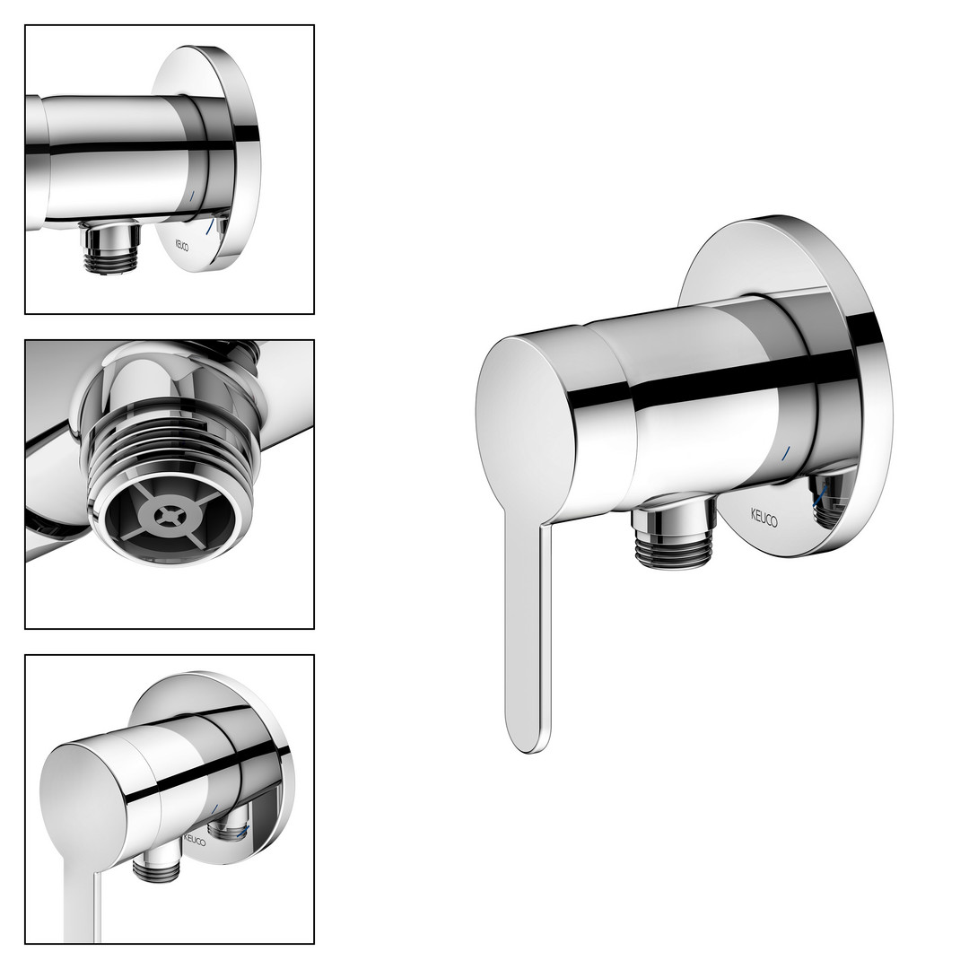 KEUCO Fertigmontageset IXMO Flat UP-Brause-Einhebelmischer, mit Schlauchanschluss, Rosette rund, verchromt