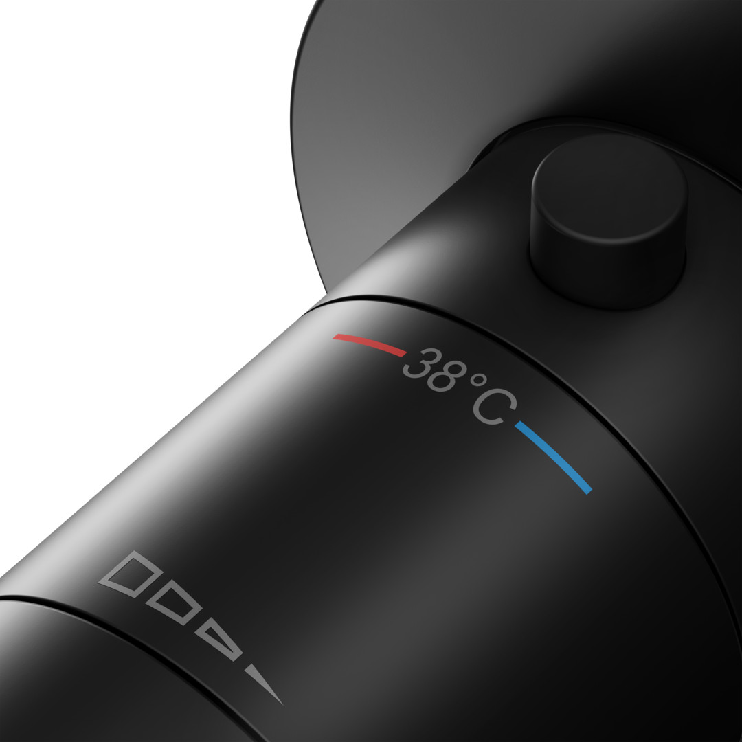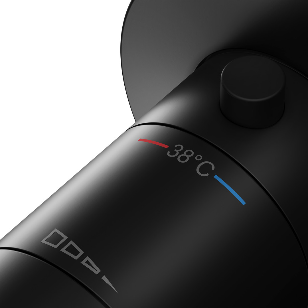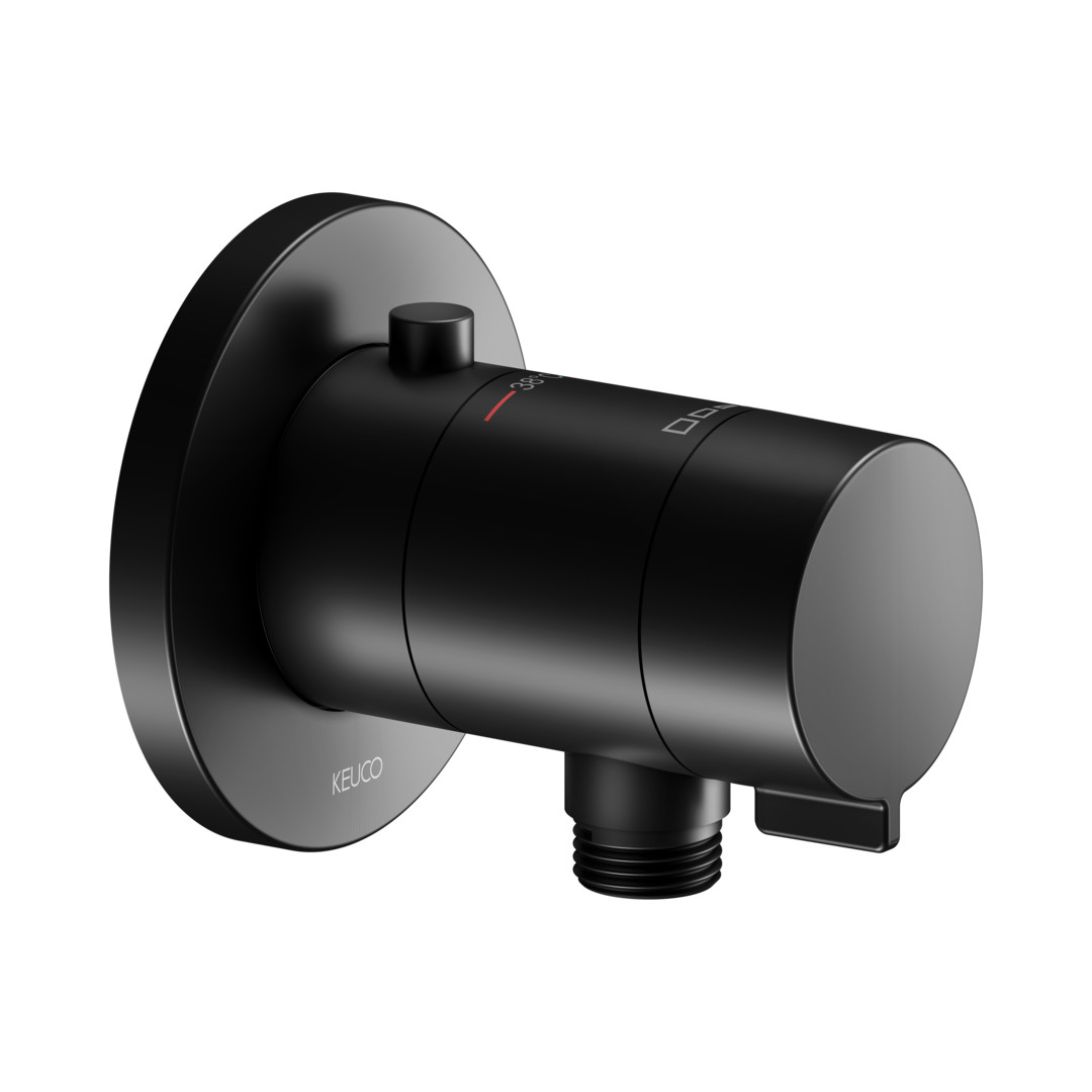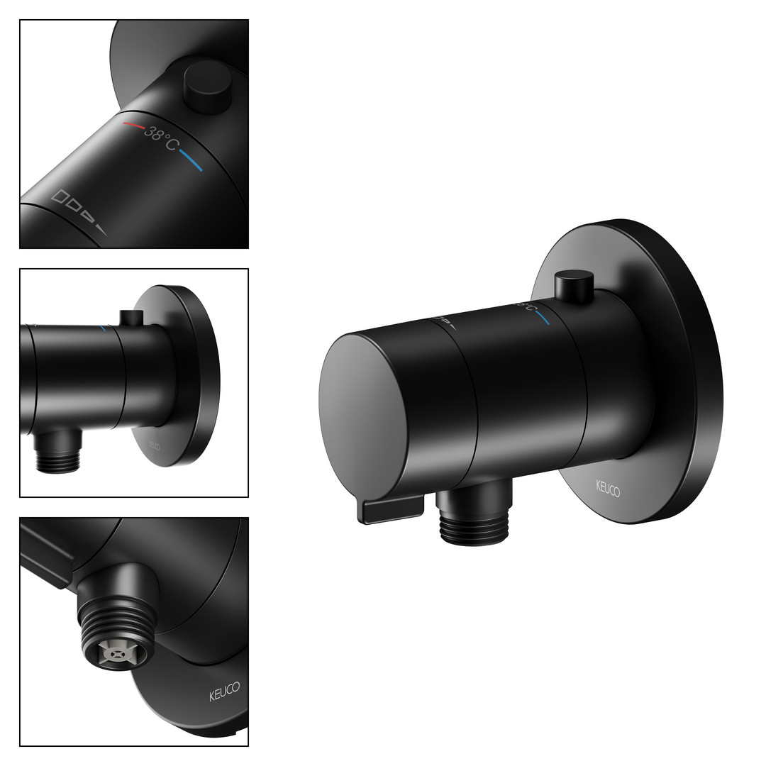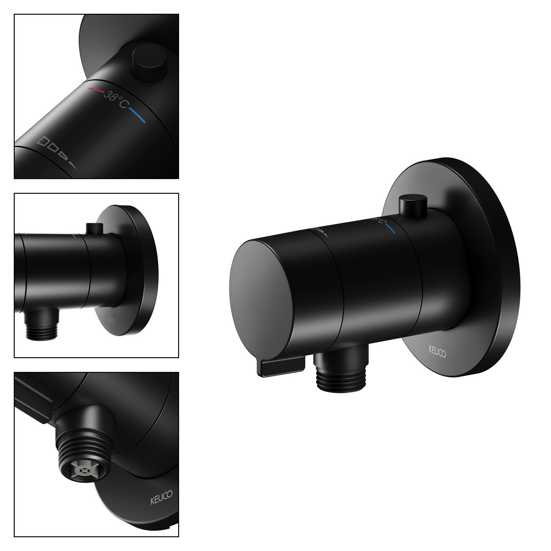 KEUCO Fertigmontageset IXMO SOLO UP-Brause-Thermostat, mit Schlauchanschluss, Rosette rund, schwarz matt KE59554370001
