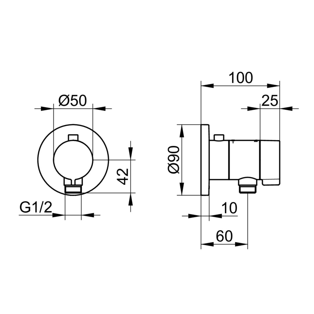 KEUCO Fertigmontageset IXMO SOLO UP-Brause-Thermostat, mit Schlauchanschluss, Rosette rund, verchromt KE59554010001