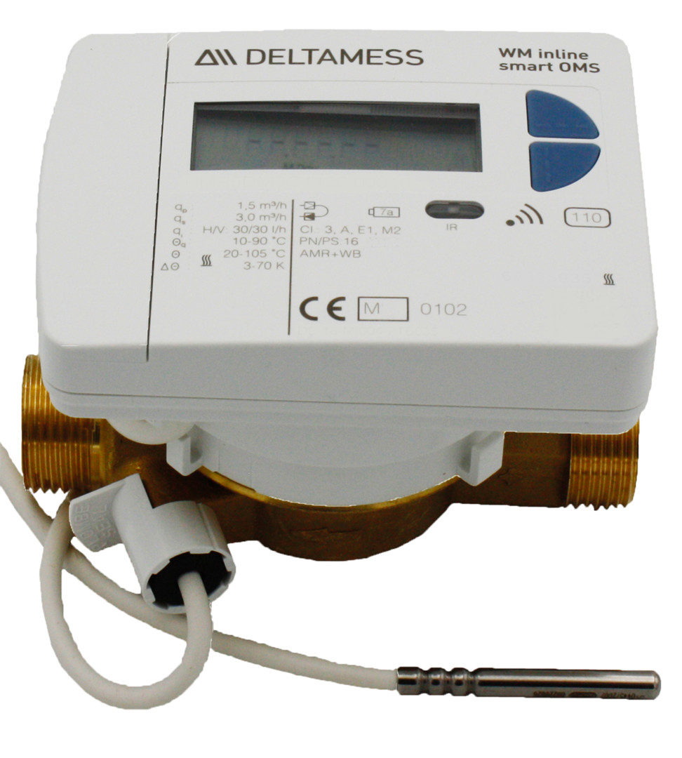 Deltamess Kompaktwärmezähler Inline smart OMS Qp 1,5 cbm/h, G 3/4 x 110 mm, Temperaturfühler 5,2mm