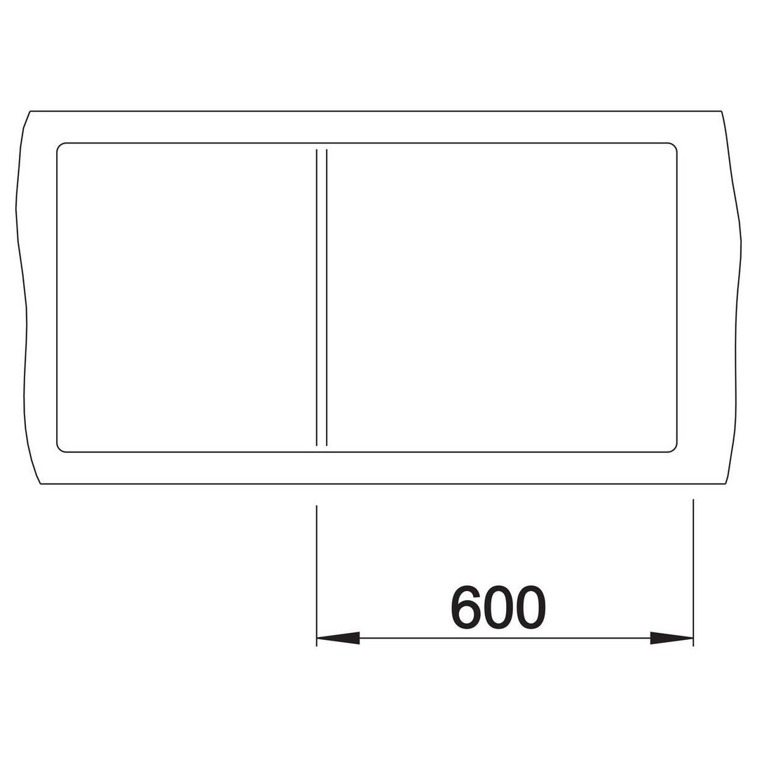 Beckentiefe 19 cm, durchgehende Batteriebank, Funktionsebene mit fließendem Übergang zur Abtropffläche, mit Überlauf C-overflow und Ablaufsystem InFino, Ablaufgarnitur mit Raumsparrohr, 3 1/2" InFino-Korbventil mit integrierter Ablauffernbedienung (Drehbetätigung), flächenbündige Ausführung, unterbündiger Einbau, Untermaß 60 cm