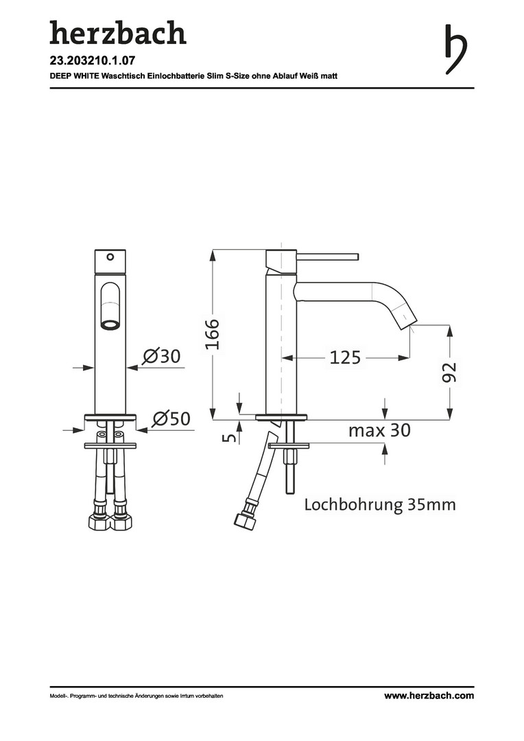 Herzbach Waschtisch-Einhebelmischer Deep slim S-Size, ohne Ablaufgarnitur, weiß matt HF23203210107