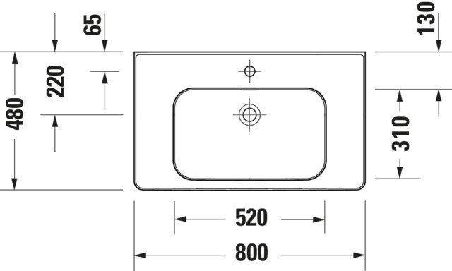 Duravit Möbel-Waschtisch Soleil by Starck 80 x 48 cm, weiß, mit Hahnloch, Überlauf, Hahnlochbank DU2377800000