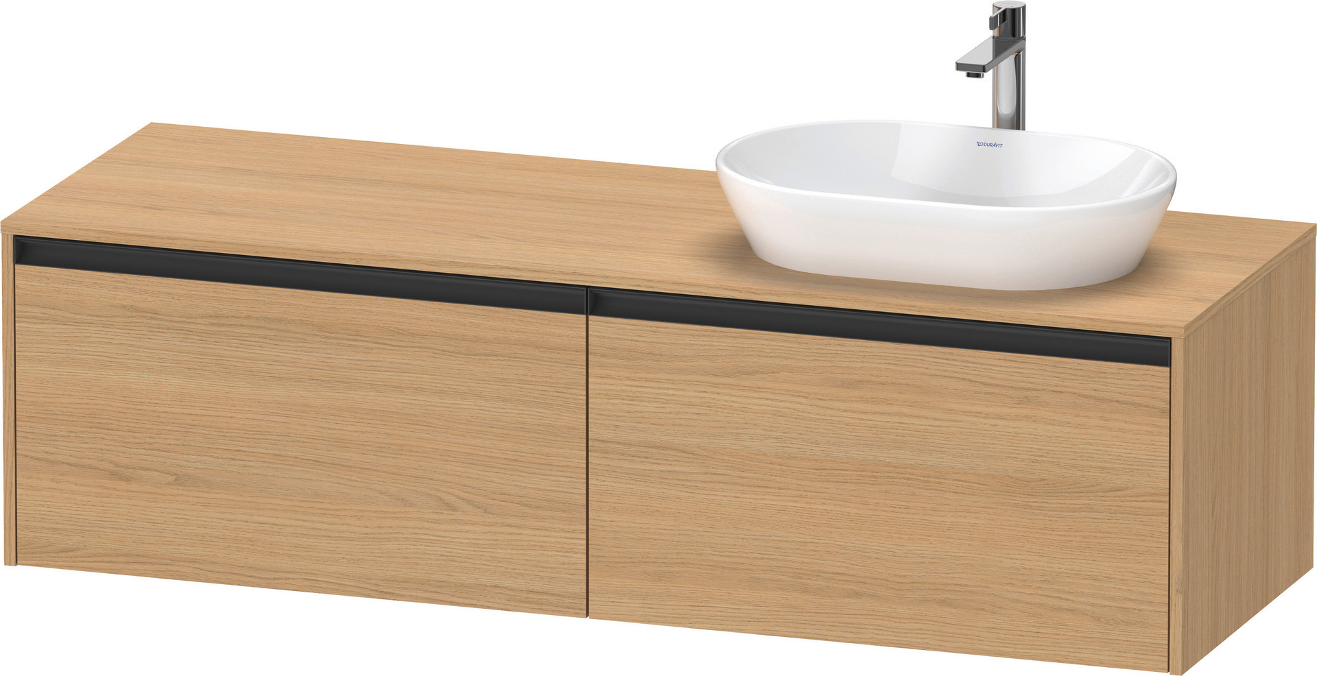 Duravit Waschtisch-Unterschrank Ketho.2 160 x 55 cm, Becken rechts, Eiche natur, 2 Auszüge, wandhängend