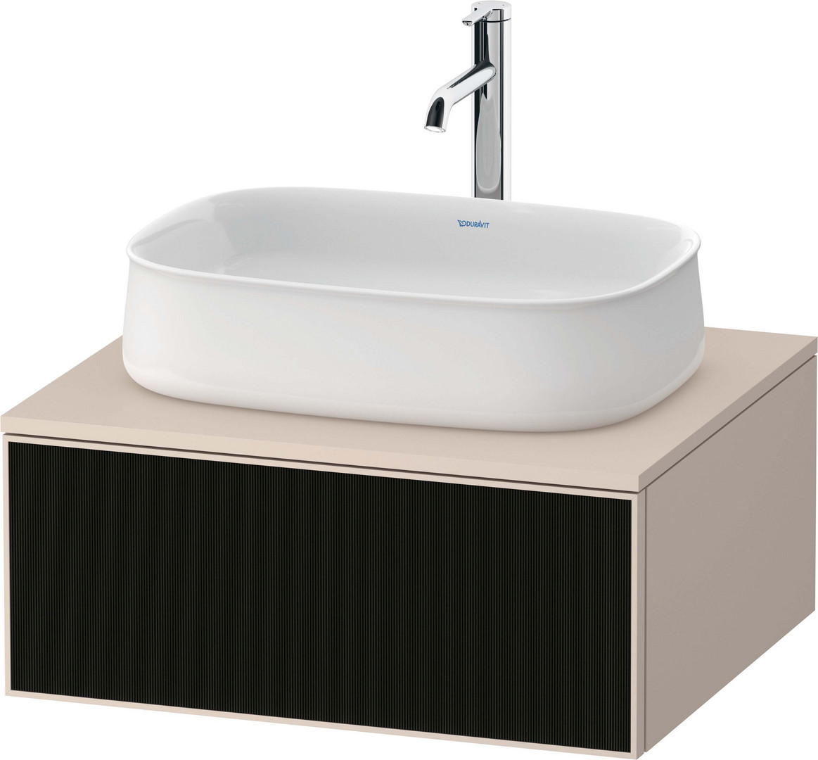 Duravit Waschtisch-Unterschrank Zencha 65x55cm, 1 Auszug, Glas schwarz Linienstruktur/taupe supermatt, Nussbaum mitte