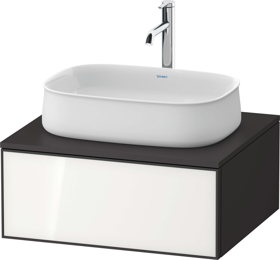 Duravit Waschtisch-Unterschrank Zencha 65x55cm, 1 Auszug, Glas weiß/graphit supermatt, Nussbaum mitte